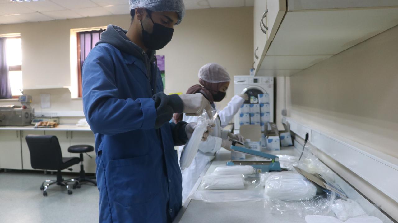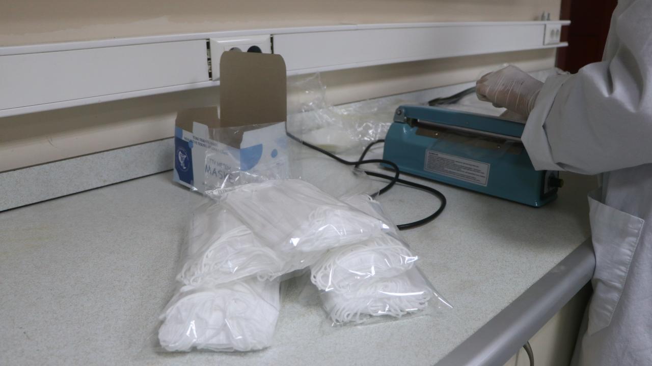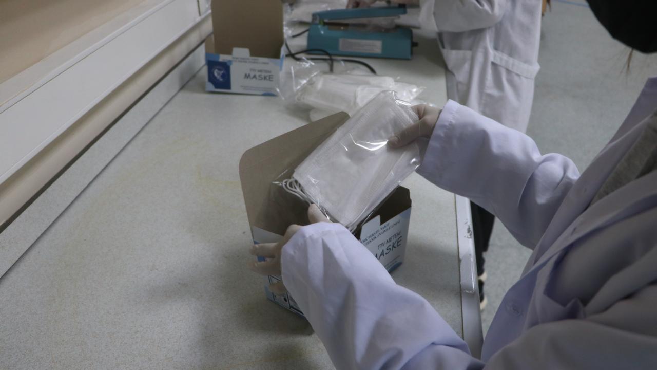 Üretimi tamamlanan maskeler, öğrenciler tarafından paketlenerek hazırlandı.