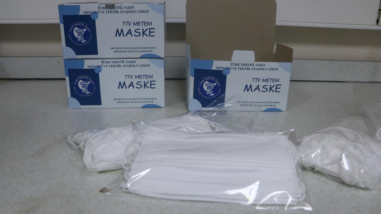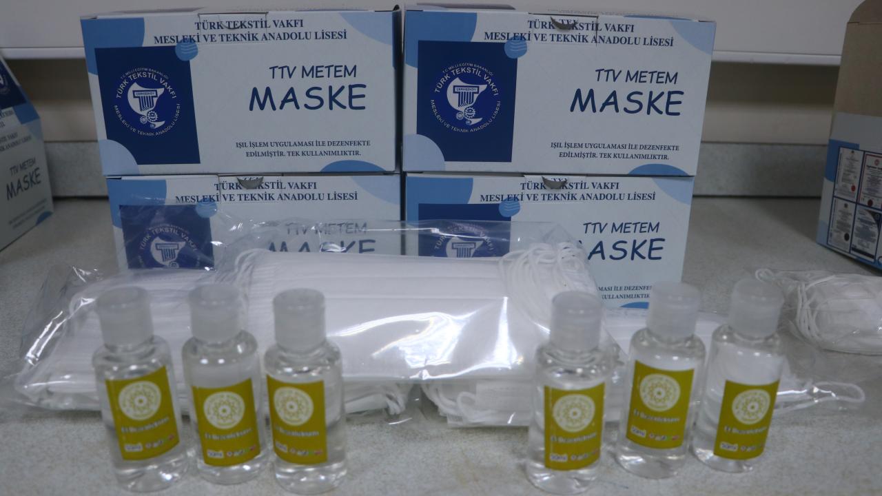 Tekirdağ'da Ar-Ge merkezi olan Çerkezköy Türk Tekstil Vakfı Mesleki ve Teknik Anadolu Lisesi öğrencilerinin ürettiği maskelerin de içinde yer aldığı 10 bin hijyen seti, kentteki öğretmenlere dağıtıldı.