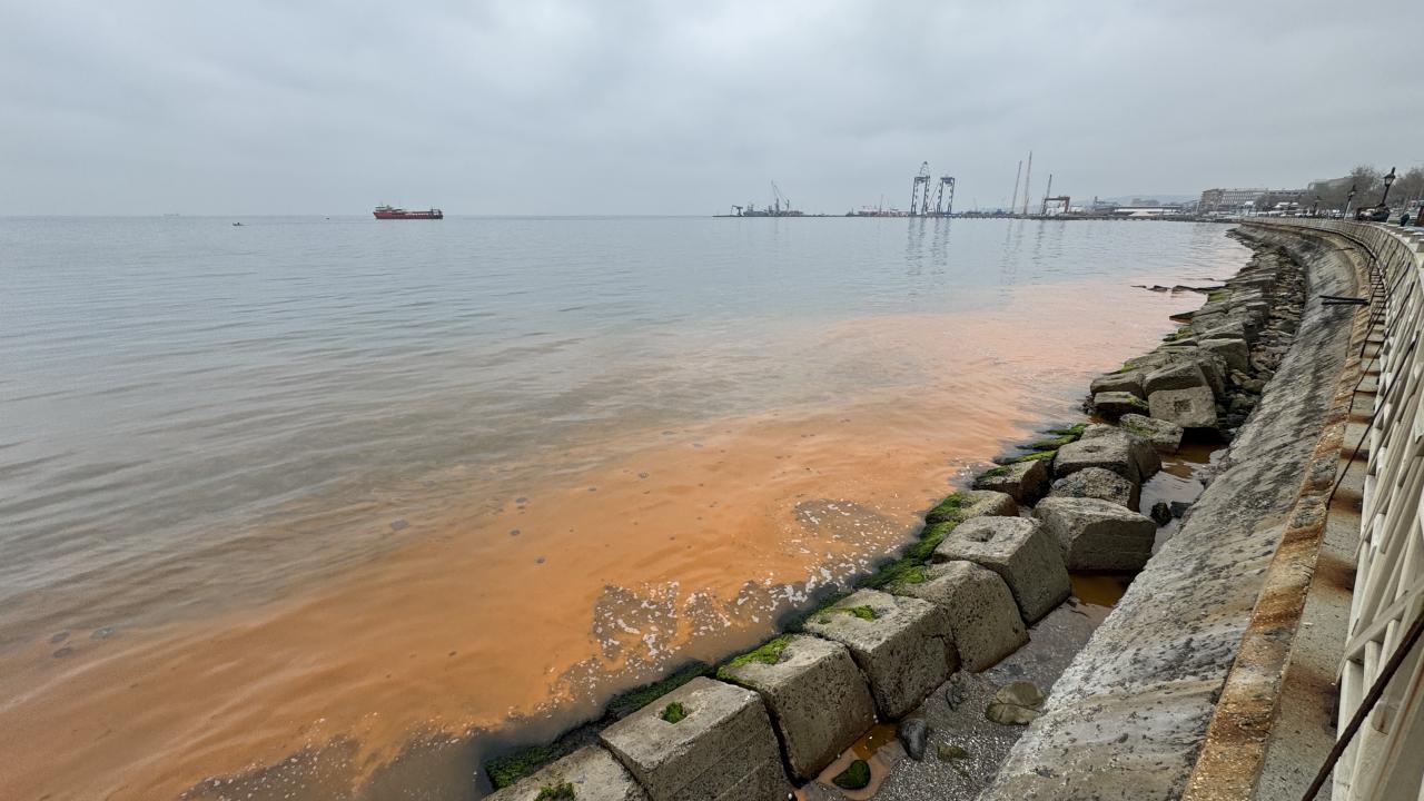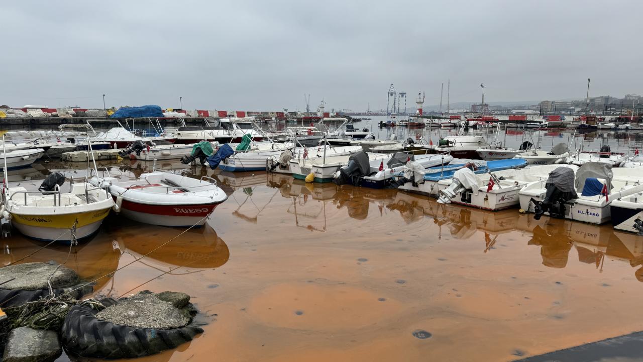 Teknelerin çekilmesi nedeniyle durgun alan oluşan balıkçı barınağında da görülen plankton çoğalması bölgede yaklaşık 20 metrekarelik denizin rengini turuncuya çevirdi.