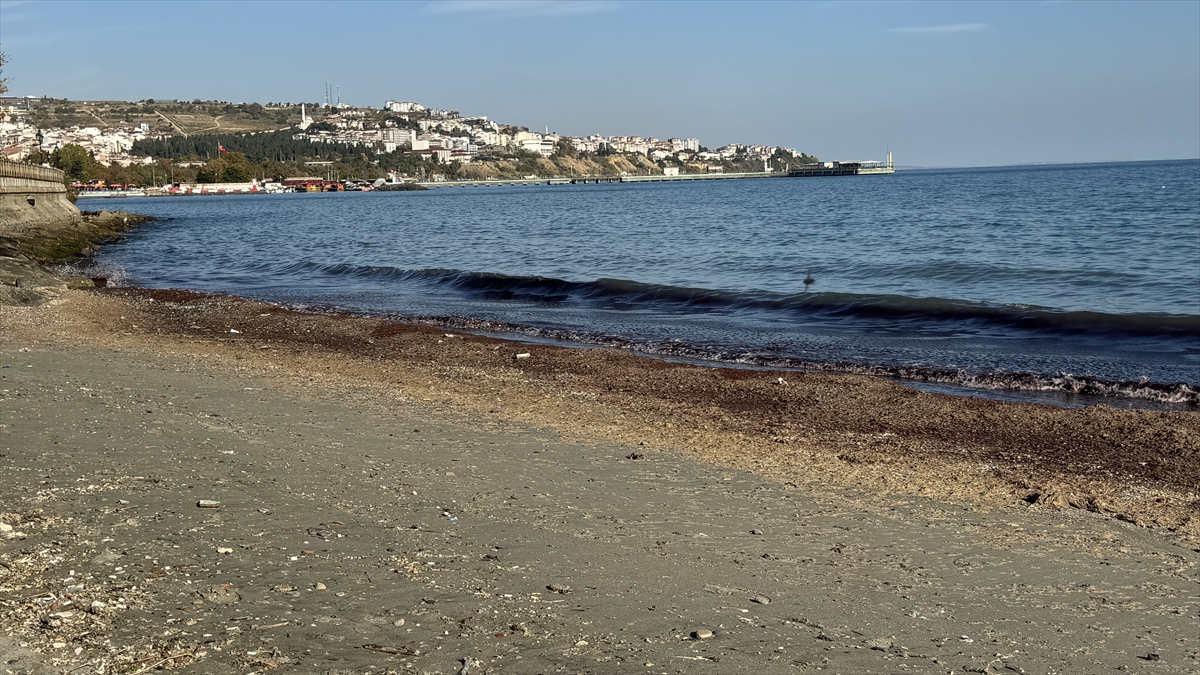 Tekirdağ'da poyraz nedeniyle sahilde kırmızı yosun birikti