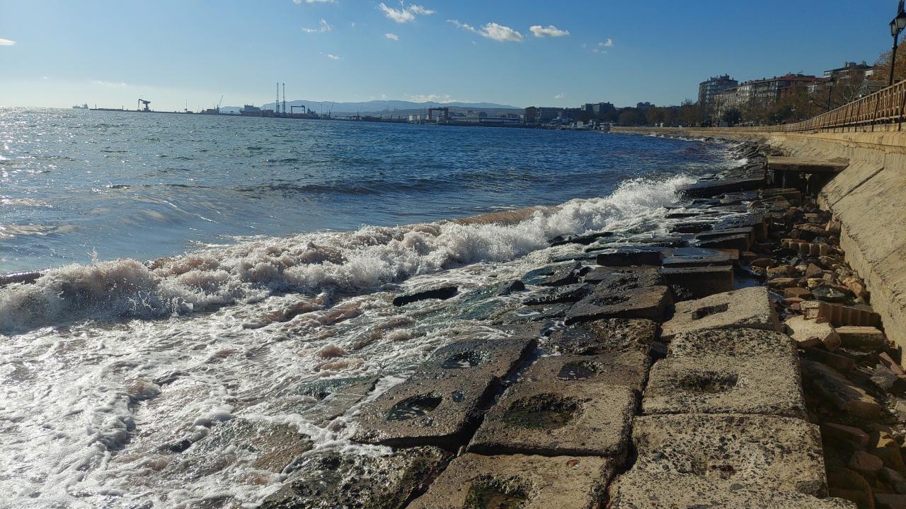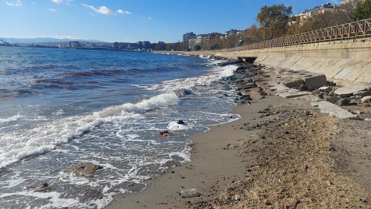 Kentte dün rüzgarla oluşan dalgalar, kıyıya yosun ve bazı atıklar sürükledi.