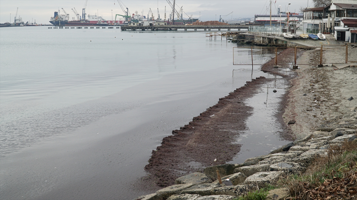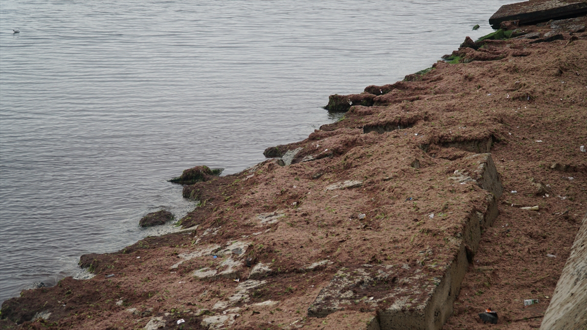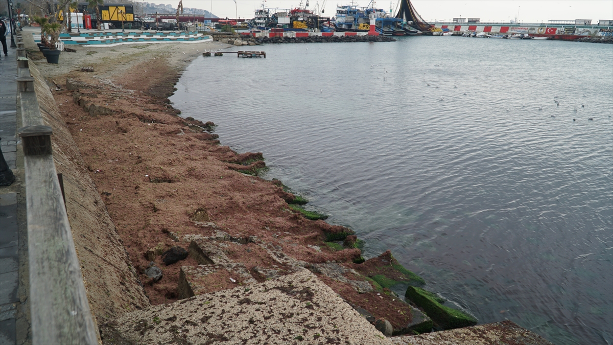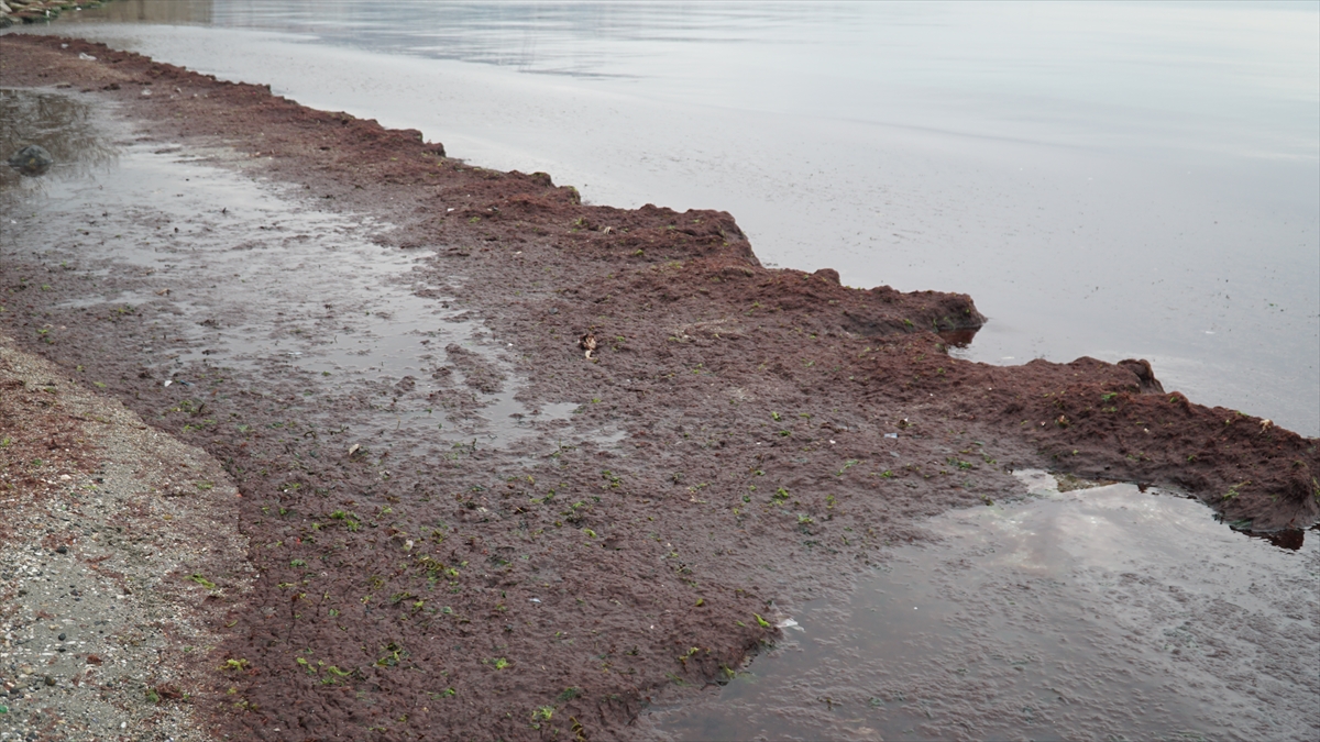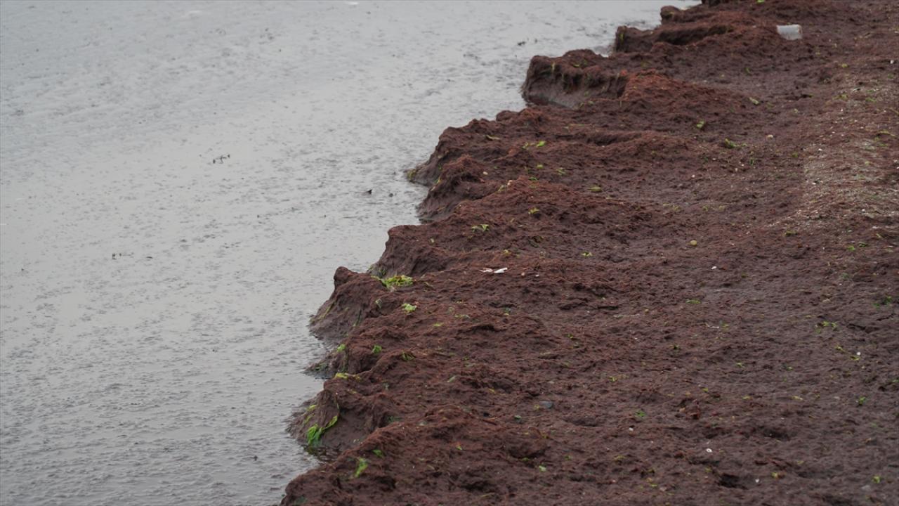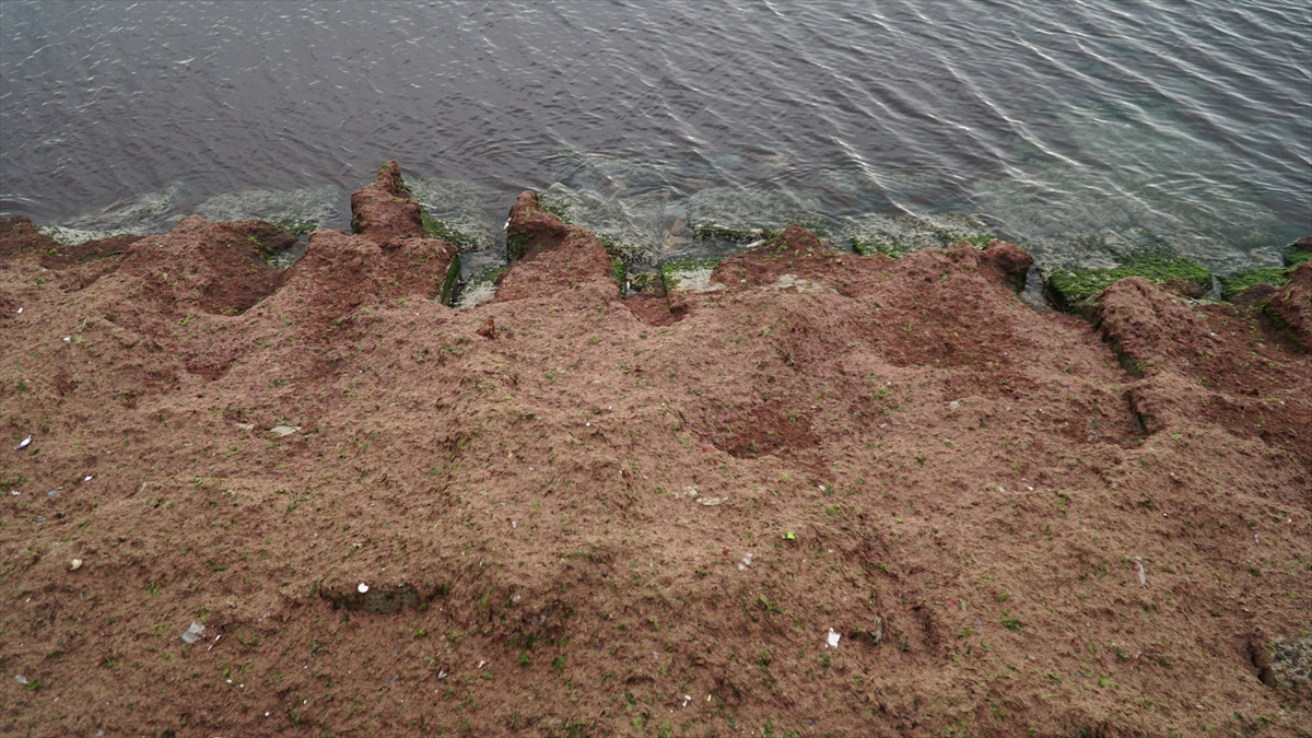 Sahildeki bazı alanlar da kırmızı yosunla kaplandı.