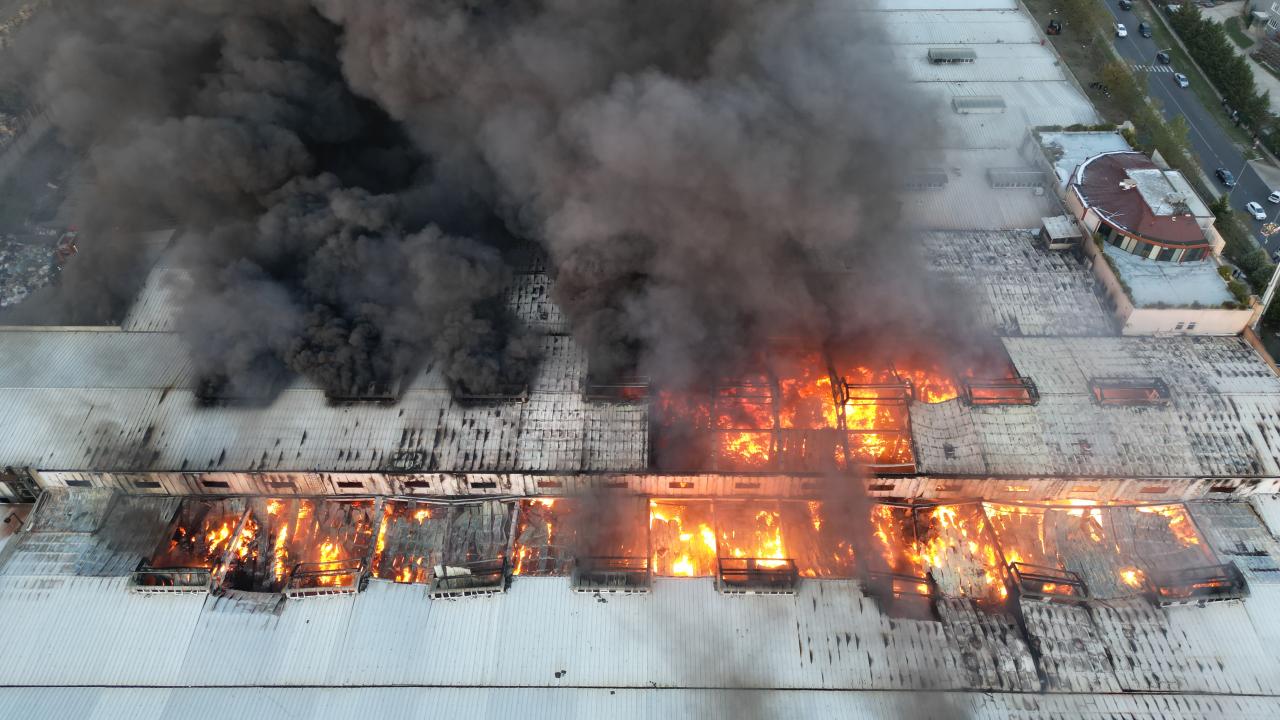 Yangının söndürülmesi sonrası soğutma çalışmaları devam etti.