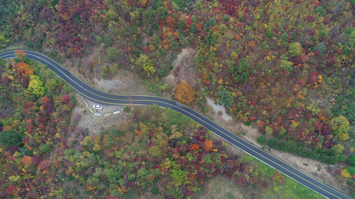Tekirdağ'da Şarköy ilçesine bağlı Uçmakdere Mahallesi'nde bulunan ormanlar, sonbaharda sarı, kahverengi ve yeşilin farklı tonlarıyla ziyaretçilerine güzel manzaralar sunuyor.