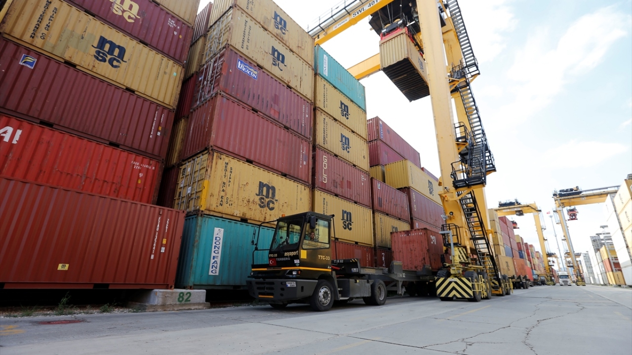 Çevik, vinç yardımıyla TTC`ye yüklenen konteynerleri limanda istenilen noktaya ulaştırıyor.