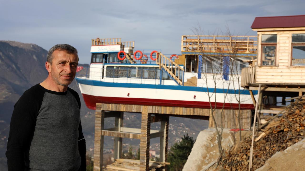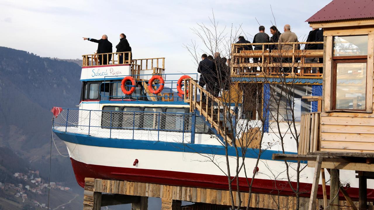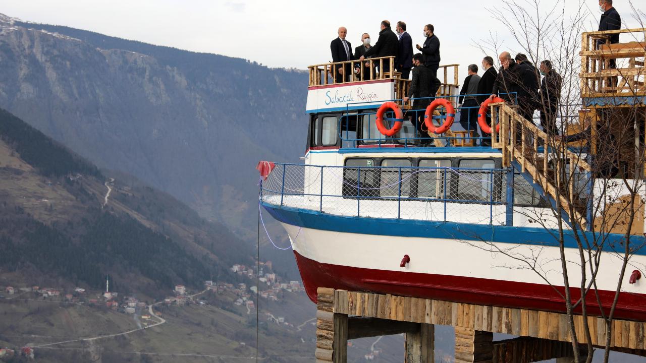 Trabzon'da turizmci Turhan Zafer, satın aldığı 15 metrelik tekneyi, TIR'la götürüldüğü Düzköy ilçesinde 700 rakımlı mezra alanına monte edip, kafeteryaya dönüştürdü. 'Sabacak Rüzgarı' adlı tekne kafe, ziyaretçilerini ağırlamaya başladı.
