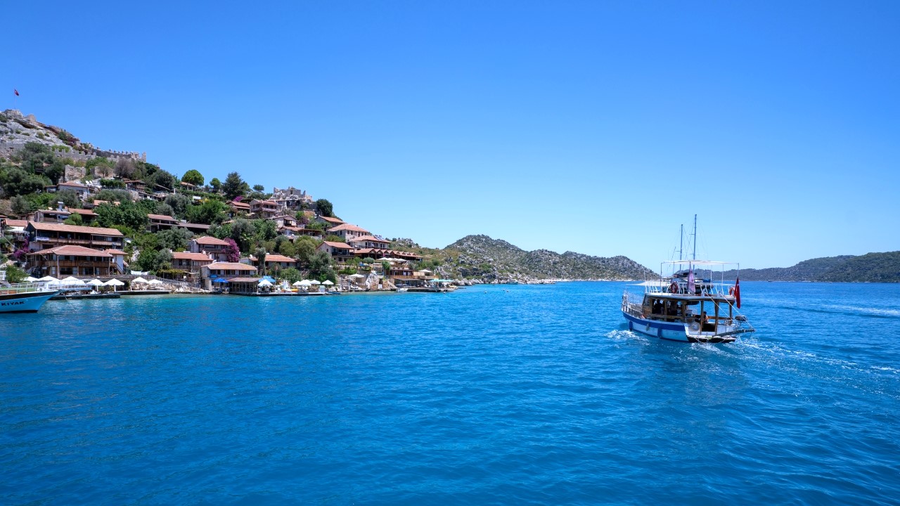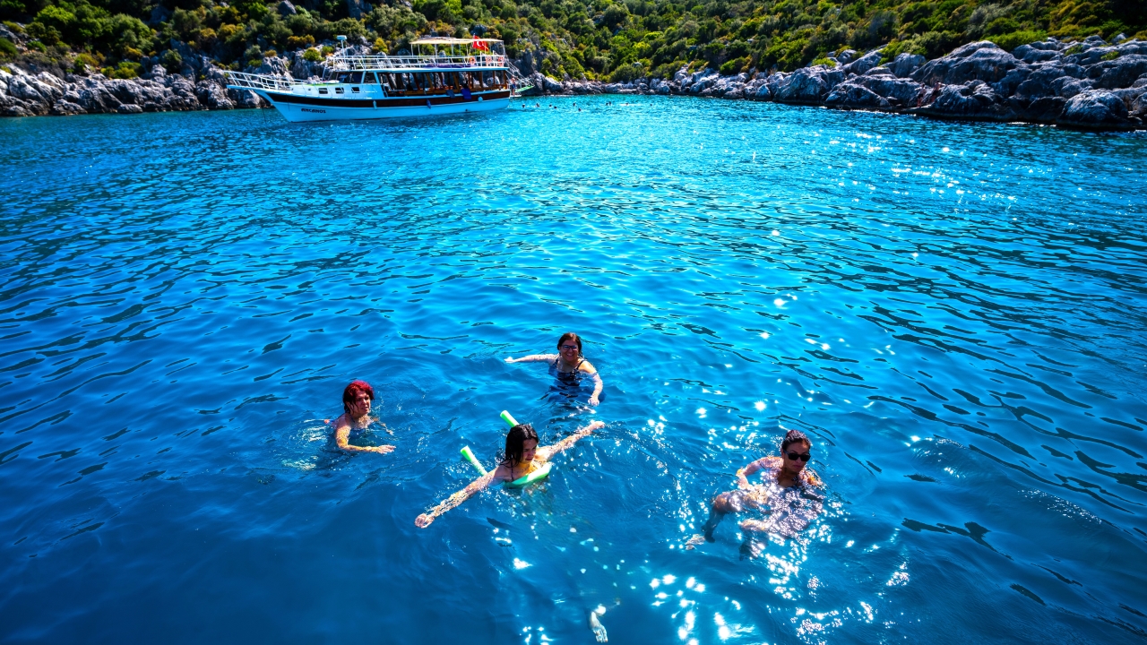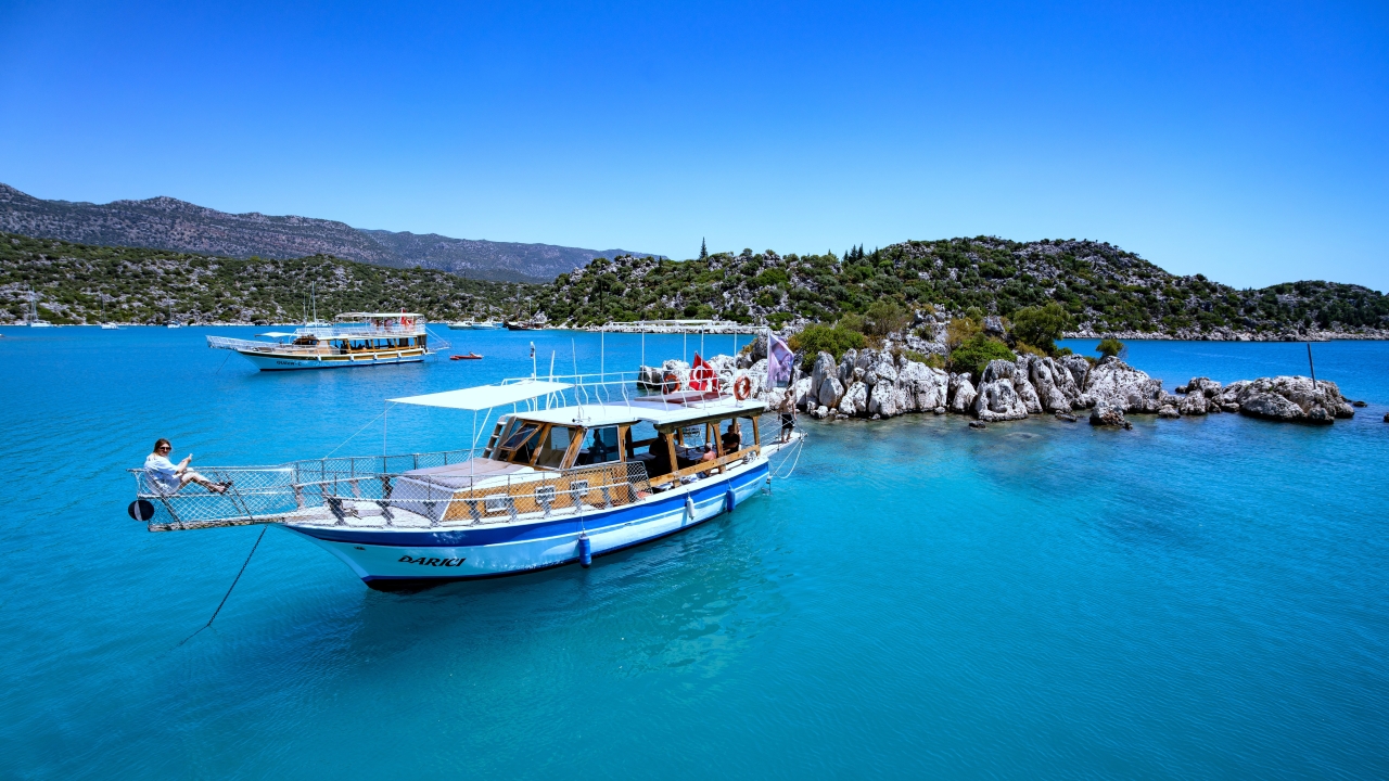 Antalya'nın Demre ilçesinde düzenlenen tekne turlarıyla hem birbirinden güzel koylar ziyaret ediliyor hem de Kekova Antik Kenti'nin su altındaki kalıntıları görülebiliyor.