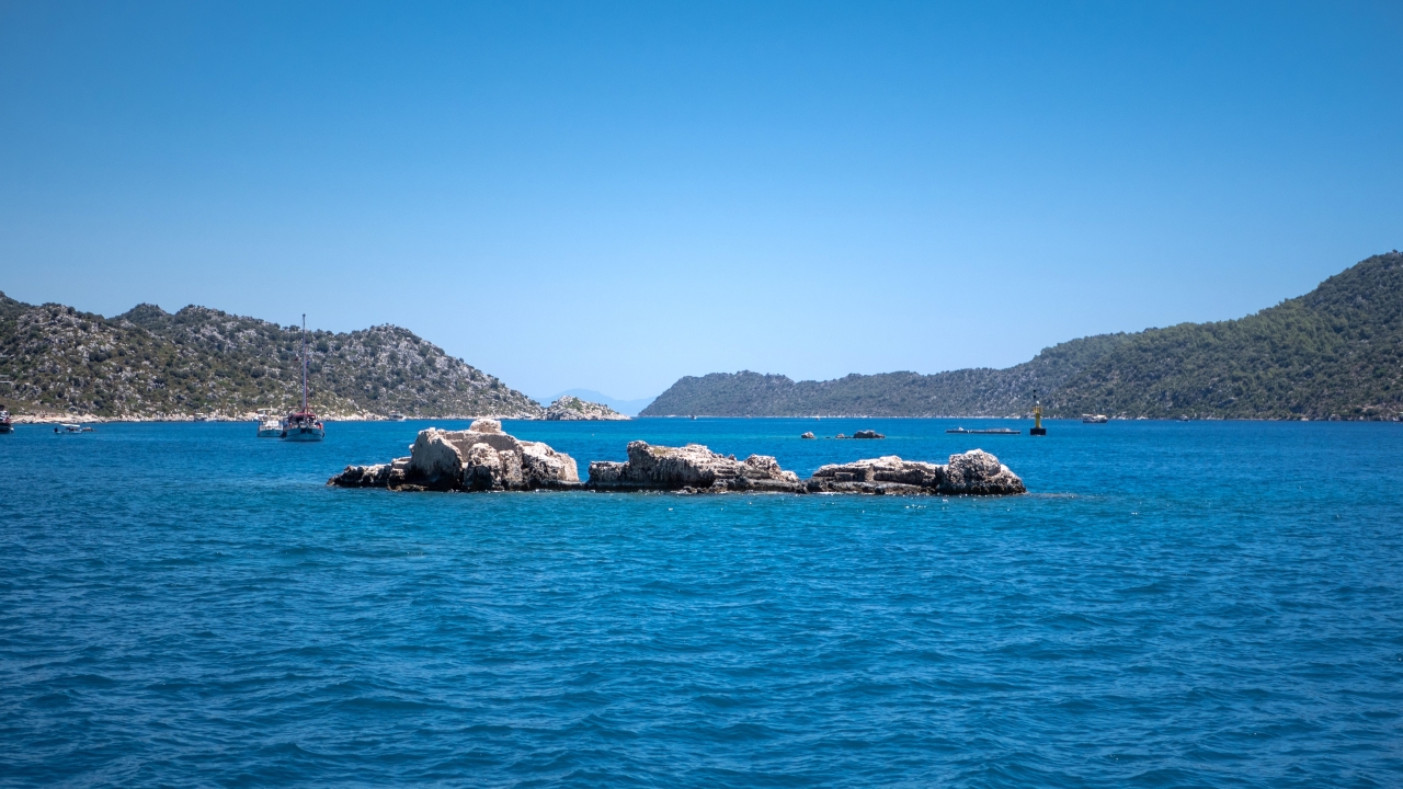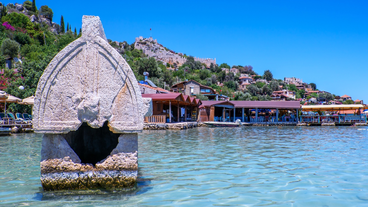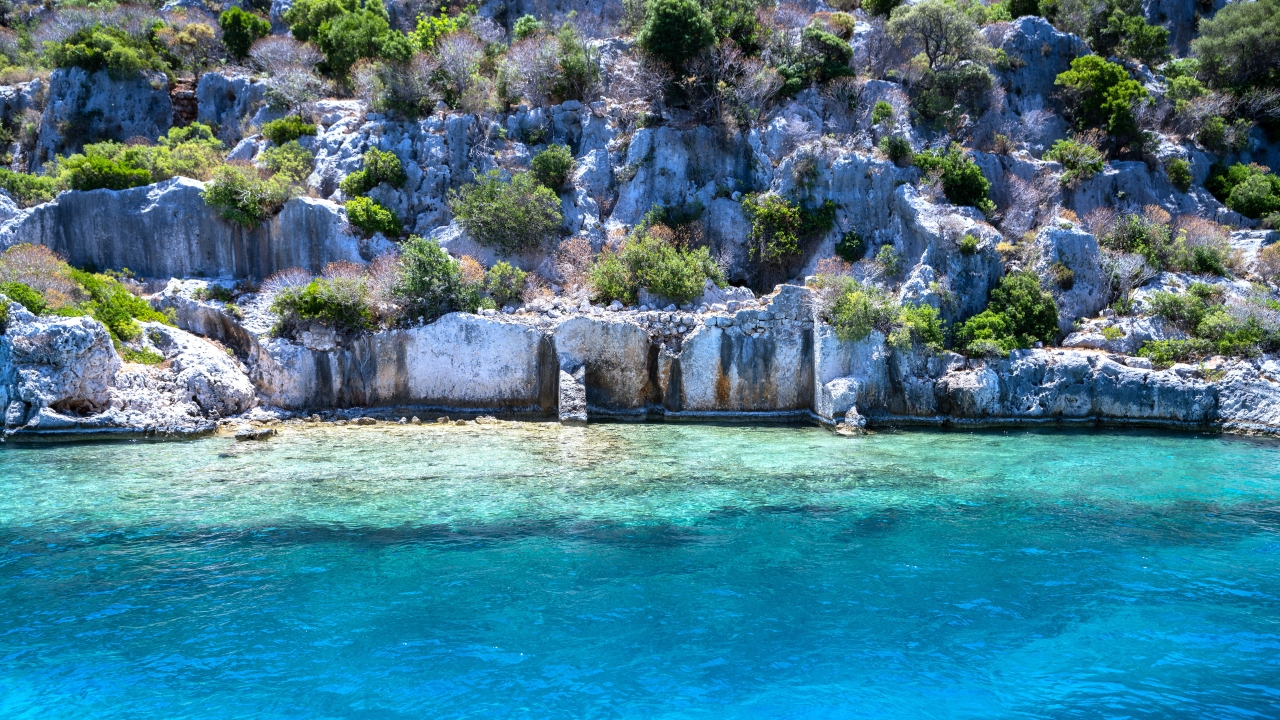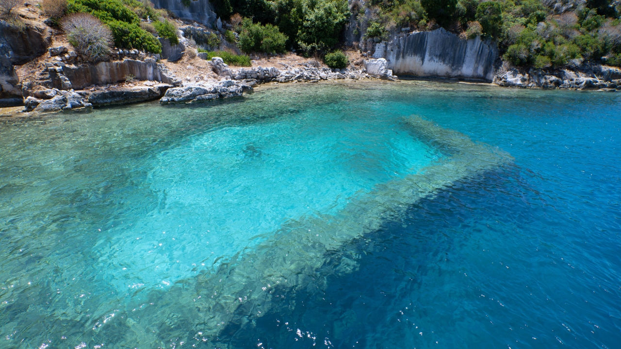 Antalya'nın Demre ilçesinde düzenlenen tekne turlarıyla hem birbirinden güzel koylar ziyaret ediliyor hem de Kekova Antik Kenti'nin su altındaki kalıntıları görülebiliyor.