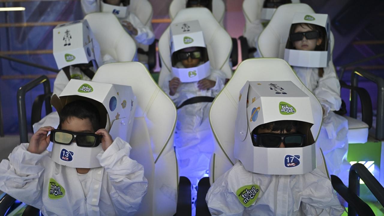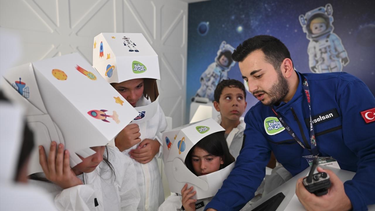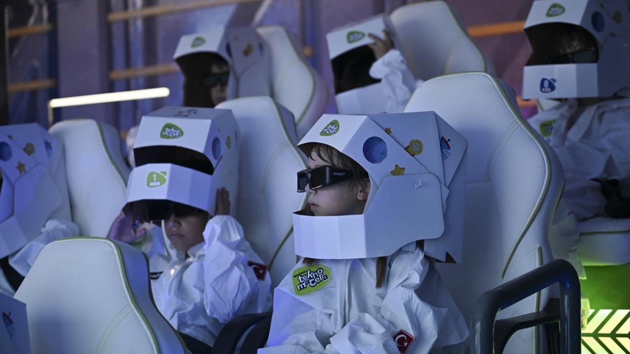 Astronot kıyafeti giyip kask takarak 3 boyutlu ortamda uzay yolculuğuna çıkan çocuklar, ayrıca alandaki uzay ve yapay zeka temalı etkinliklerle de keyifli vakit geçirdi.