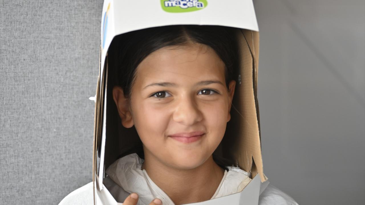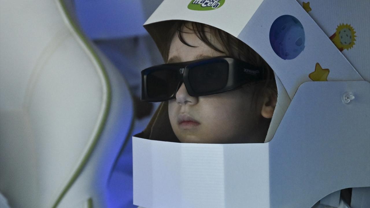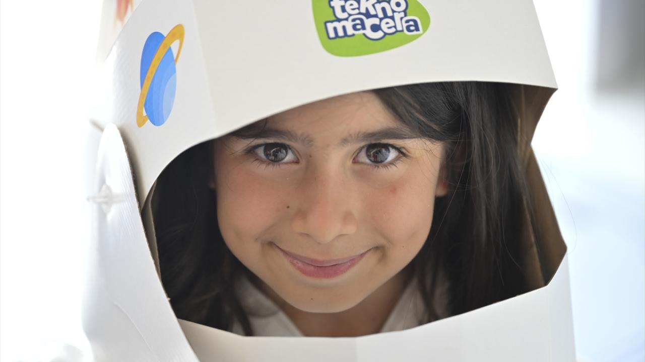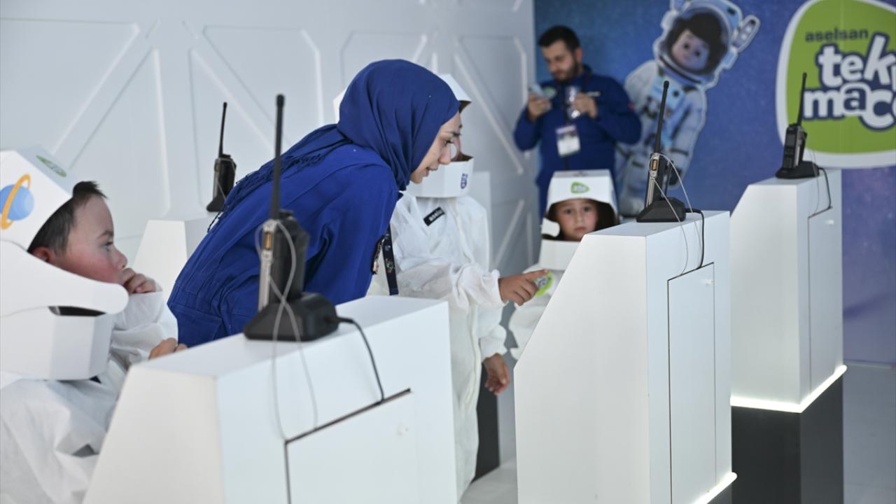 Astronot kıyafeti giyip kask takarak 3 boyutlu ortamda uzay yolculuğuna çıkan çocuklar, ayrıca alandaki uzay ve yapay zeka temalı etkinliklerle de keyifli vakit geçirdi.
