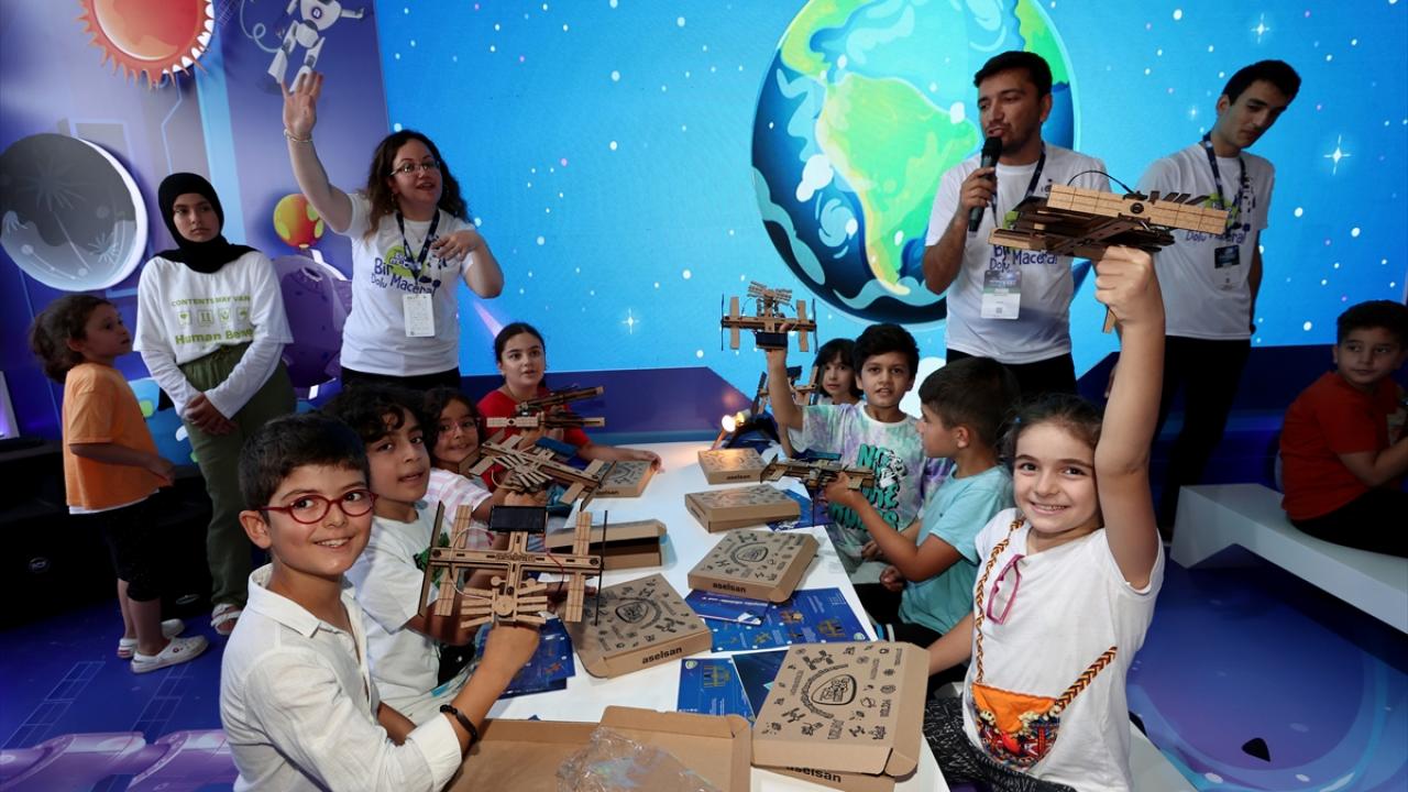 ASELSAN standını ziyaret eden çocuklar, kurumun ürettiği ve T129 Atak Taarruz ve Taktik Keşif helikopteri pilotlarının kullandığı "avcı kaskını" takarak fotoğraf çektirdi.
