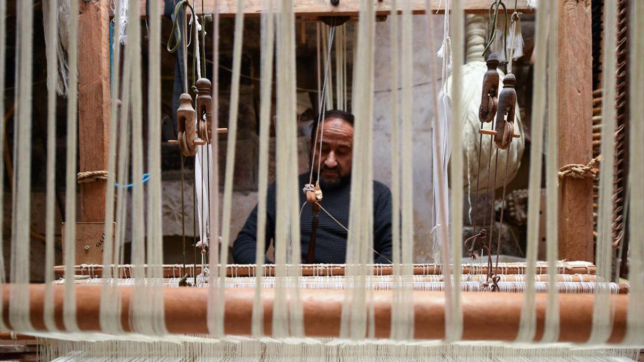 Teknolojiye direnen Suriyeli Samır, el tezgahıyla dokumacılık mesleğini sürdürüyor