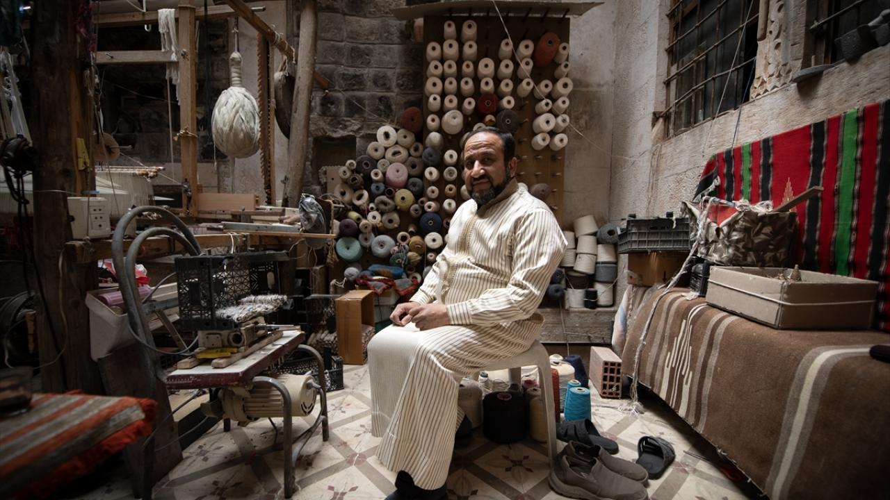 Suriye'nin Hama kentinde yaşayan 52 yaşındaki Samır Al-Madani, çocuk yaşta babası ve dedesinden öğrendiği dokumacılığı, kol gücüyle çalışan el tezgahında sürdürmeye devam ediyor.