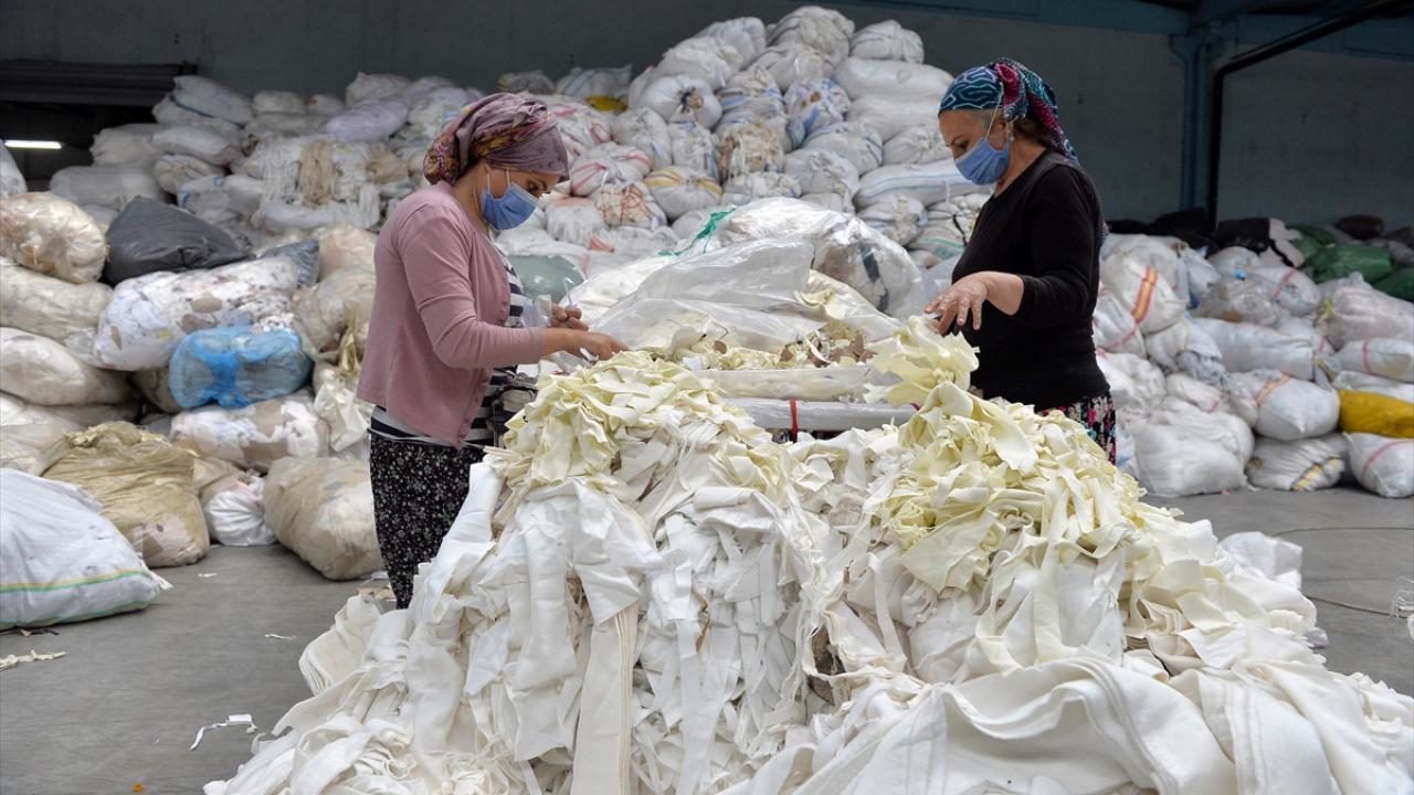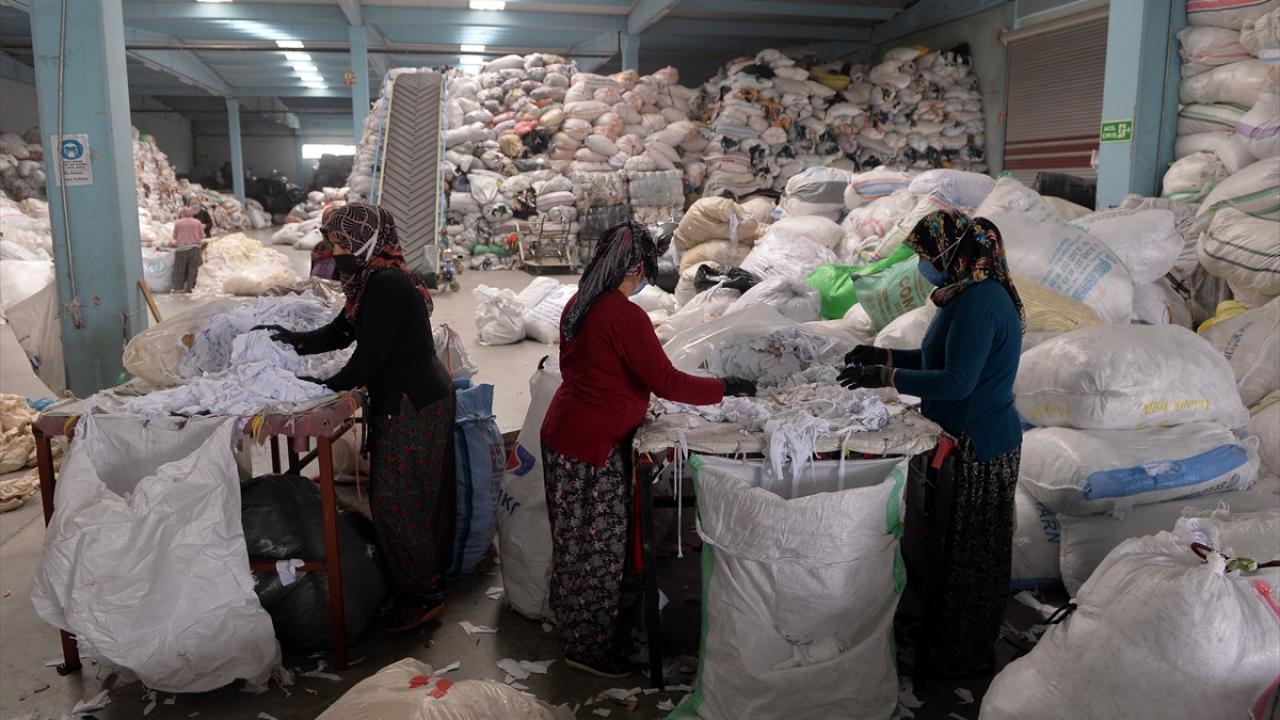 Uşak`ta çoğunlukla kadınların istihdam edildiği tesislerde kalite ve renklerine göre ayrıştırılan tekstil atıkları, pamuk elyafı ve ipliğe dönüştürülüyor.