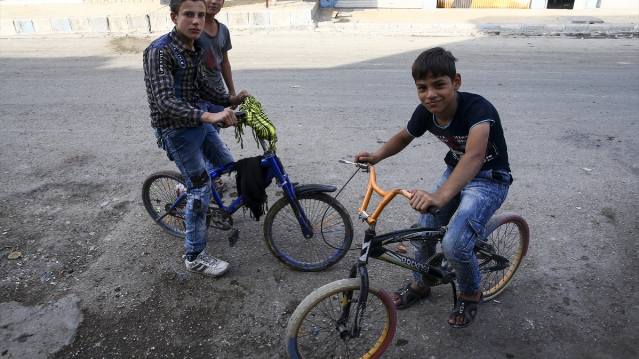İlçe sokaklarında top oynayan, bisiklete binen Tel Abyadlı çocuklar da terörden kurtulmanın mutluluğunu doyasıya yaşıyor.