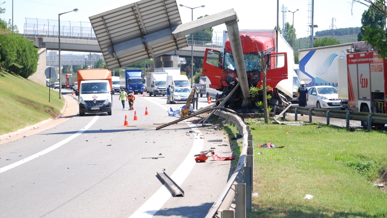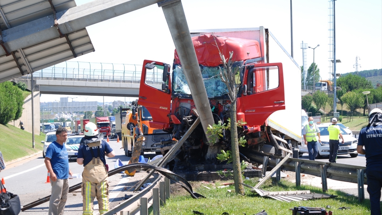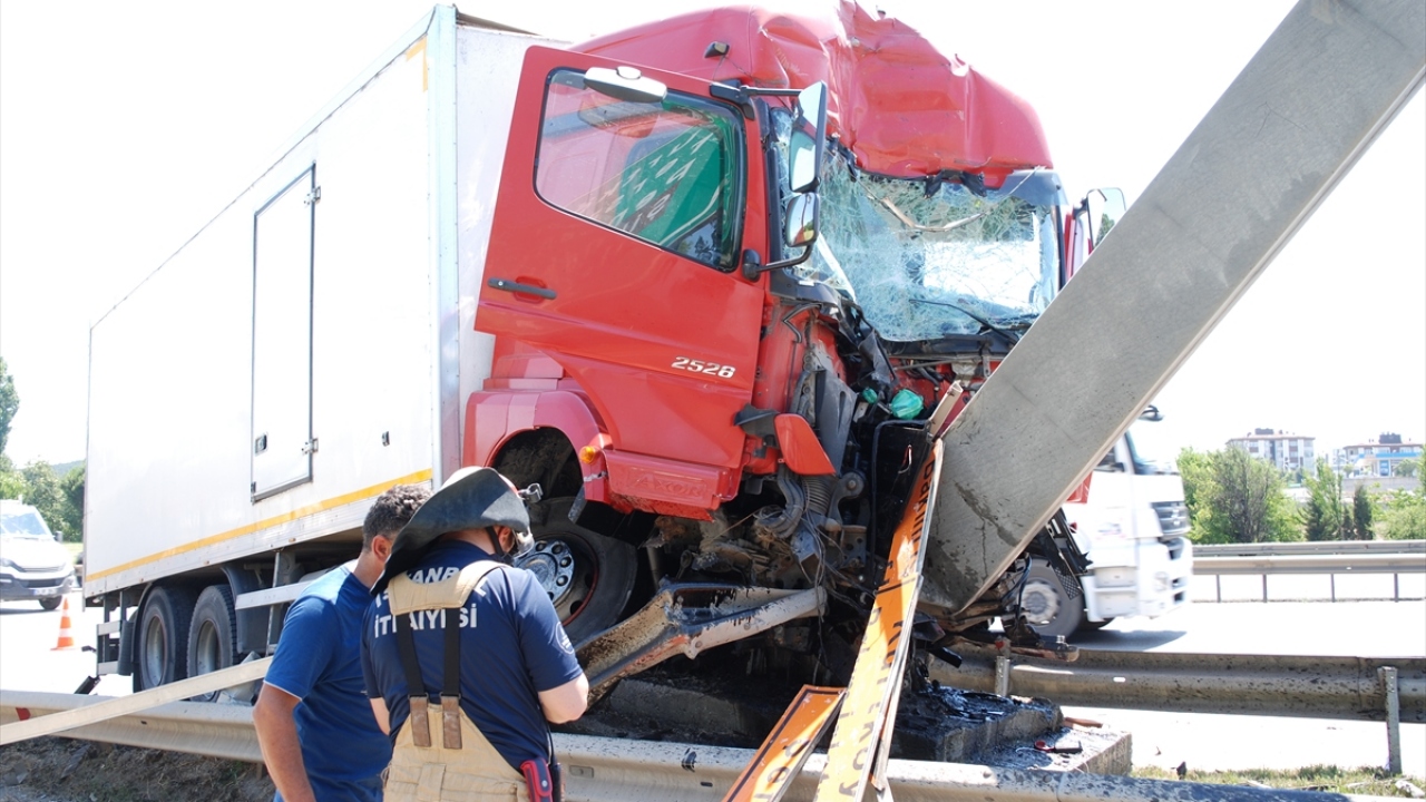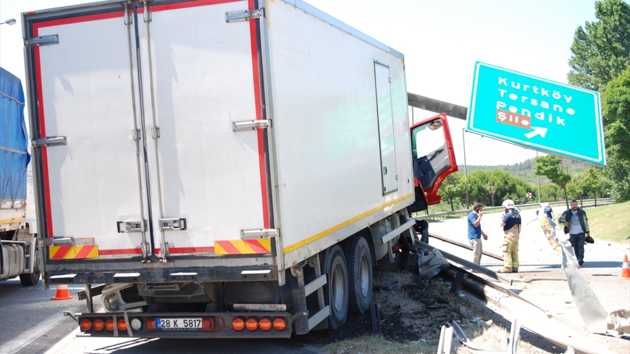 TEM Otoyolu'nda, kamyonun bariyerlere çarpması sonucu meydana gelen kaza nedeniyle trafik aksadı.