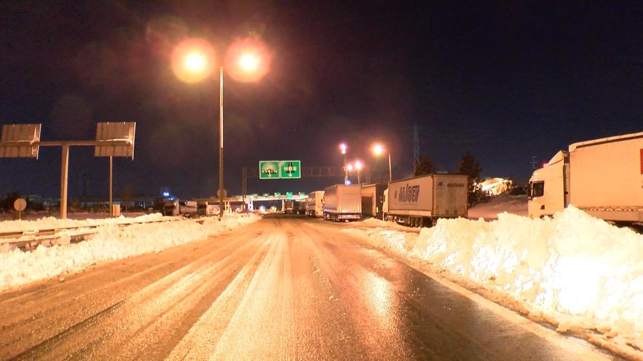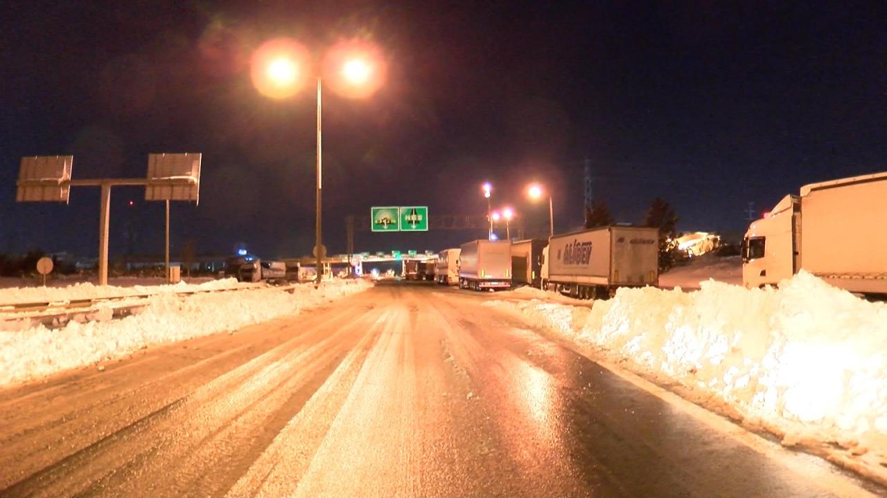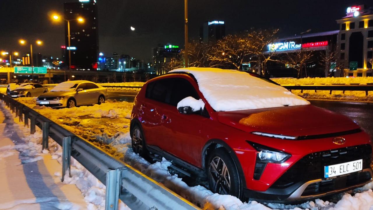 İstanbul’da etkili olan yoğun kar yağışı ve tipi nedeniyle geçtiğimiz gece trafik durmuştu. Sürücüleri tarafından TEM Otoyolu kenarlarına bırakılan araçlar alınmayı bekliyor.