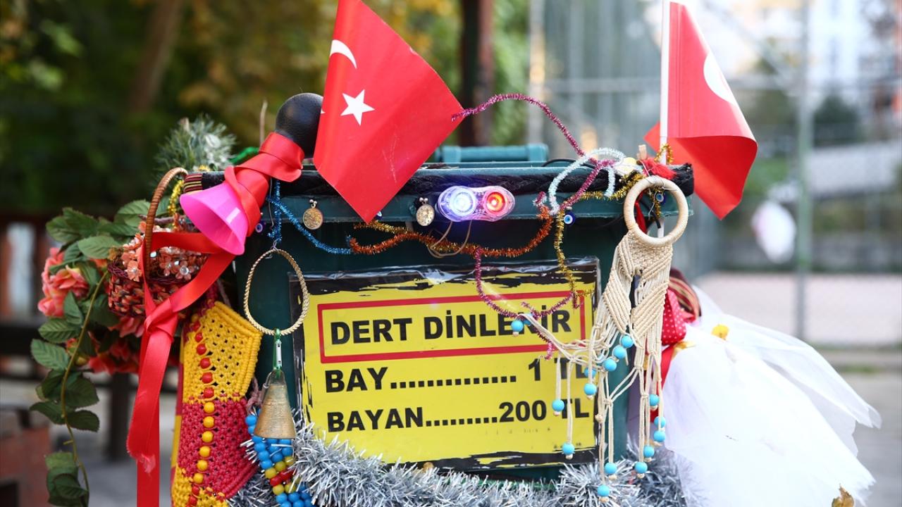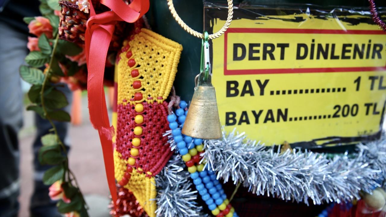 Asılan eşyaların kendisi için değerli olduğunu dile getiren Memiş, "Plaka astım `Ercan 28`, bir de şaka babında yazı var `Dert dinlenir, erkek 1 lira, kadın 200`, `Kadın dert dinleme ücreti neden 200 lira? Erkeğin daha fazla olması gerekiyor` diyenler var. Böylelikle çevredekilerle aramızda hoş sohbetler de oluyor" dedi.