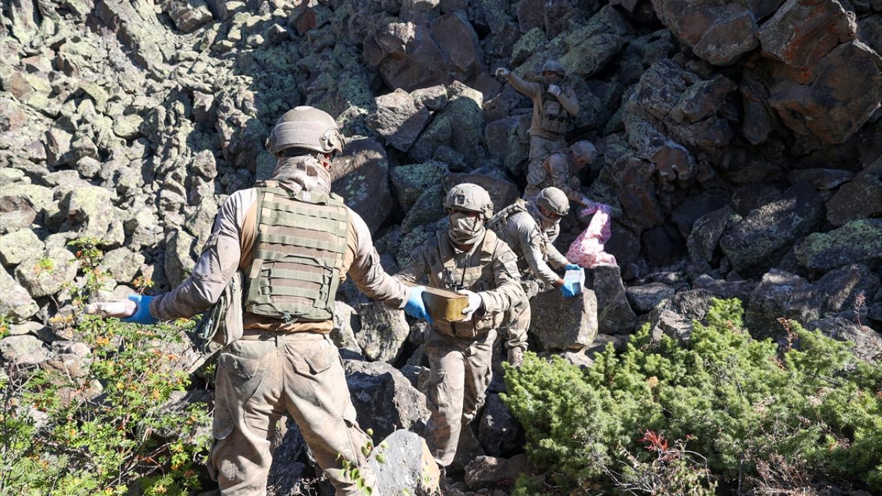 Saatlerce yürüyerek bölgeyi karış karış gezen, bakılmadık yer bırakmayan komandolar, şu ana kadar 150`nin üzerinde mağara, barınak ve sığınağa girdi. Komandolar, bu sığınaklardan 70`e yakınının sığınak ve barınak olarak kullanıldığını, 40`a yakınında da yaşam malzemesi, cephane ve lojistik malzemelerin saklandığını tespit etti.
