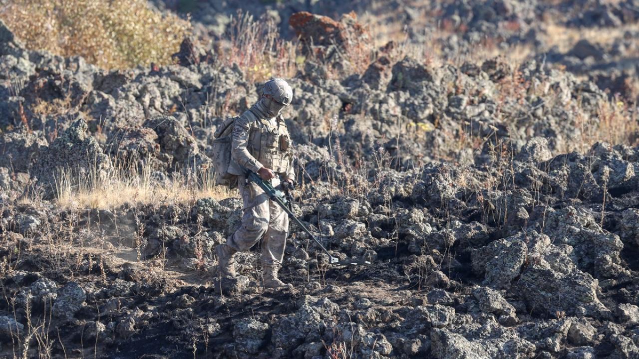 Volkanik taşlarla kaplı zorlu arazide, gündüz kavurucu sıcağa, gece de soğuk havaya rağmen fedakarca görev yapan İl Jandarma Komutanlığı bünyesindeki komandolar, termal kamera, gece görüşlü dürbün ve yerli silahlarla arama tarama faaliyetlerini icra ediyor.