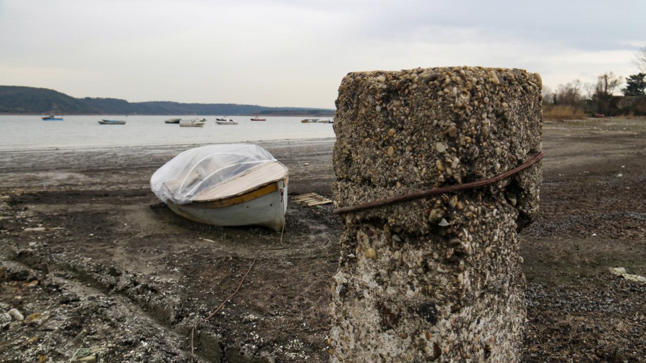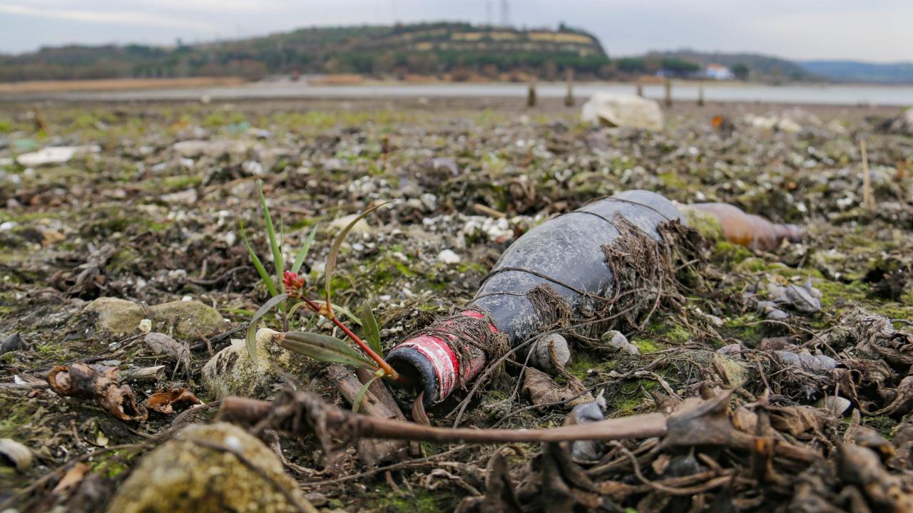 İstanbul’un barajlarının genel doluluk oranı yüzde 20 seviyelerine düşerken, Terkos gölünde ise su seviyesi 21.42'ye kadar geriledi. Gölün yaklaşık 100 metre çekilmesi ile tekneler karaya otururken, ortaya çıkan çöpler havadan görüntülendi.