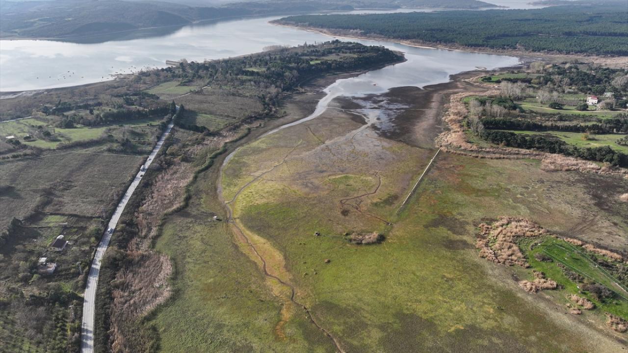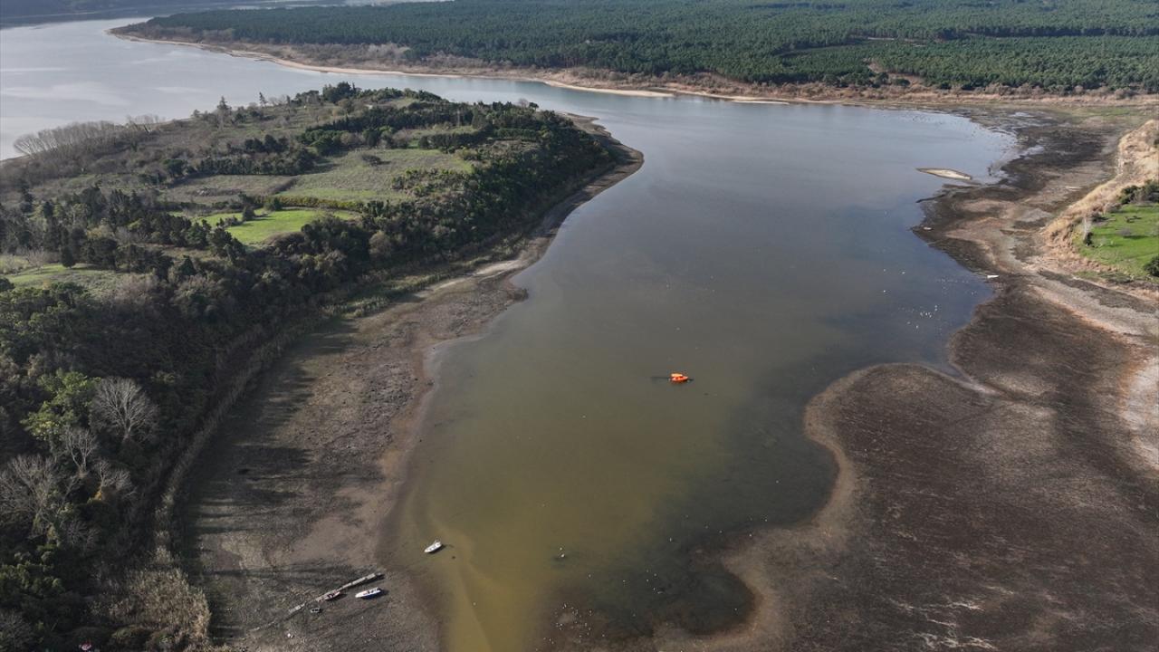 Arnavutköy ilçesi sınırlarında yer alan Terkos Gölü`nde yağışların azalması ve kuraklığın etkisiyle su seviyesinde belirgin bir düşüş yaşandı.