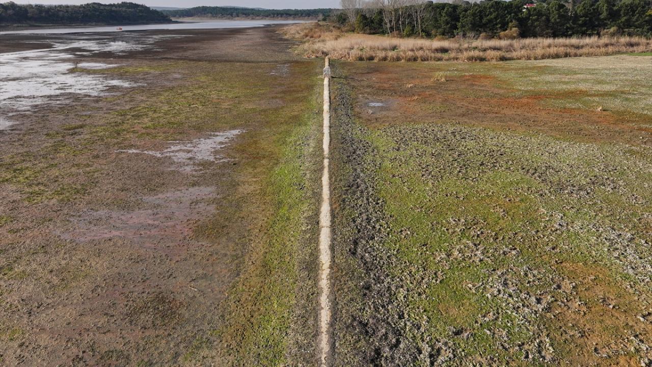 İstanbul'un önemli içme suyu kaynaklarından Terkos Gölü'nde suyun çekilmesiyle tarihi su kanalları ve eski iskele kalıntıları gün yüzüne çıktı.
