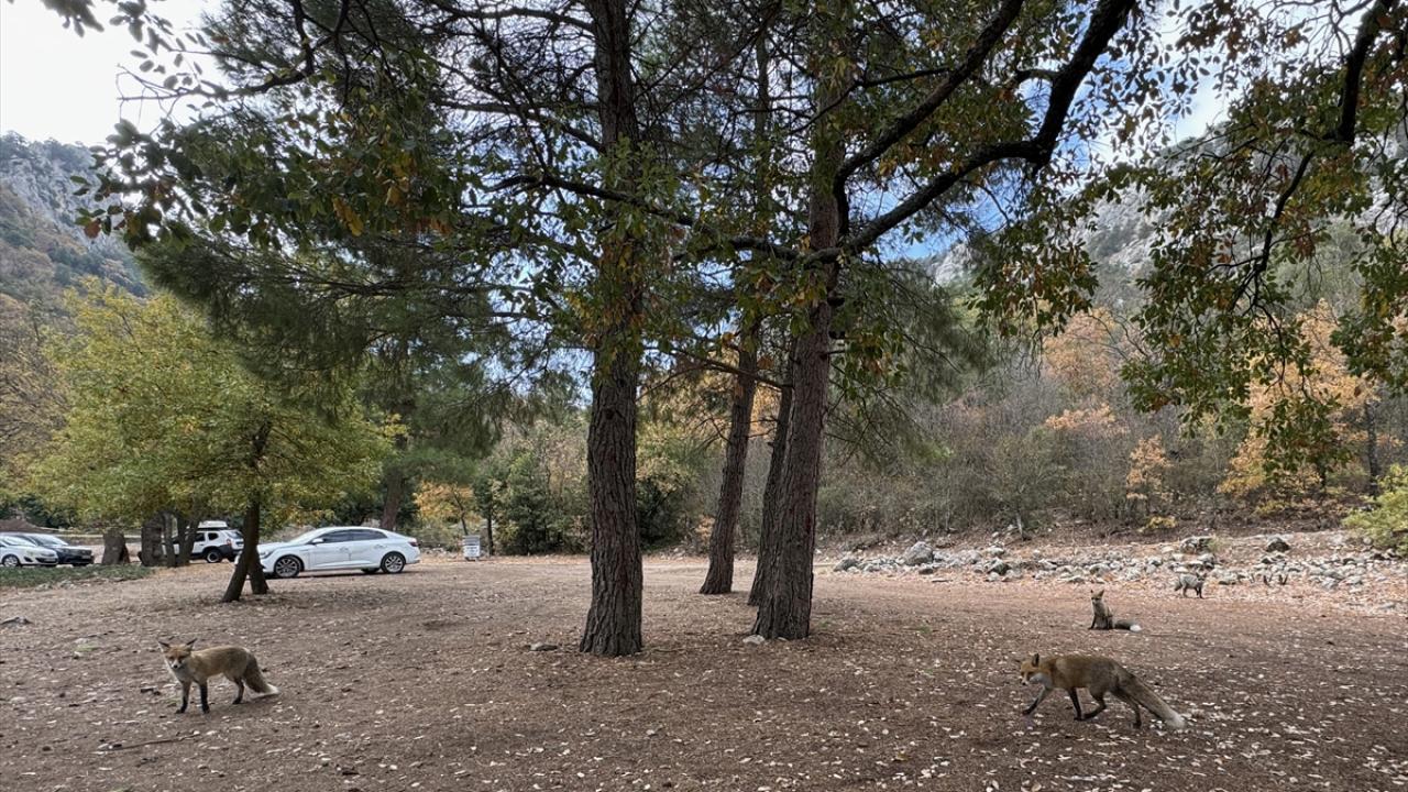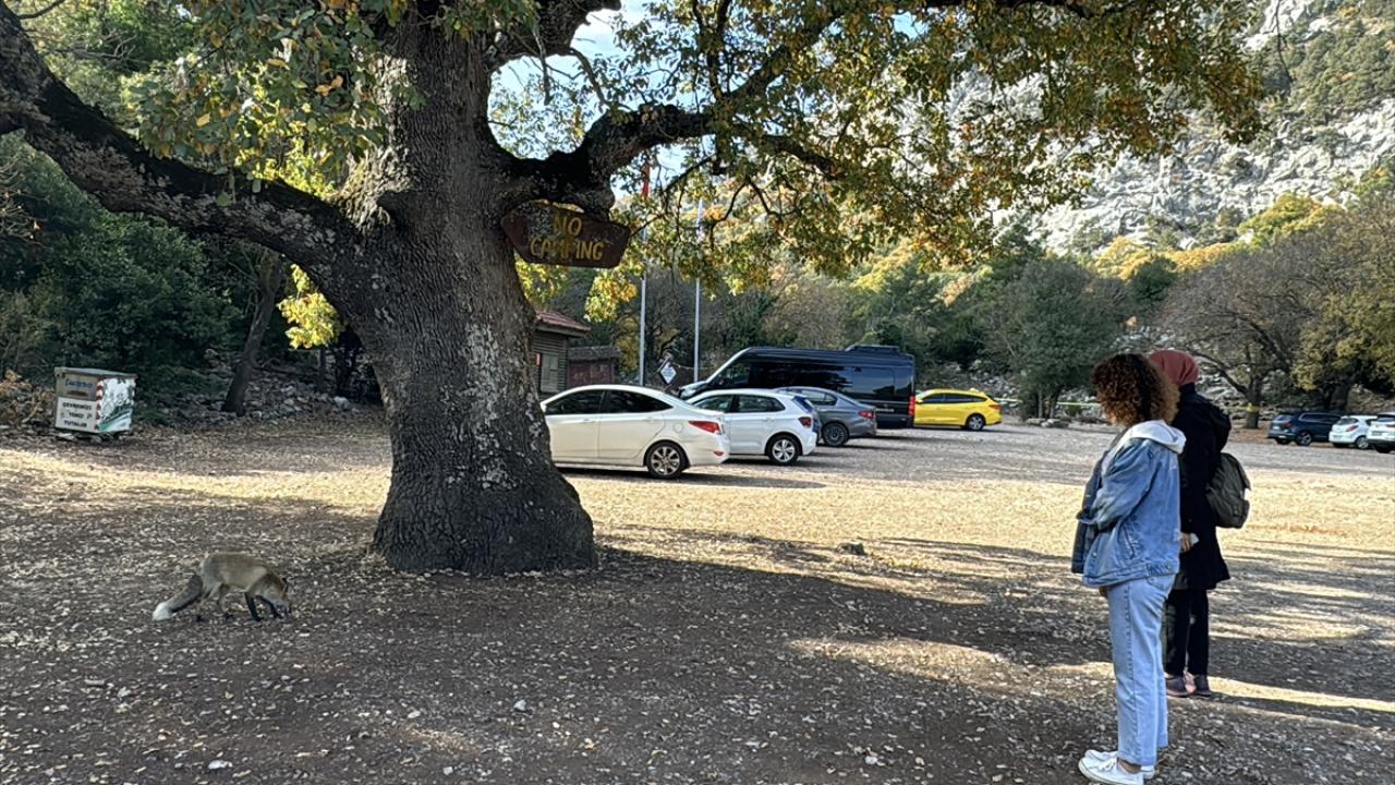 UNESCO Dünya Mirası Geçici Listesi`nde yer alan, tarih ve doğanın iç içe geçtiği Termessos`u gezmek için araçlarıyla bölgeye ulaşanları, antik kentin girişinde tilkiler karşılıyor.