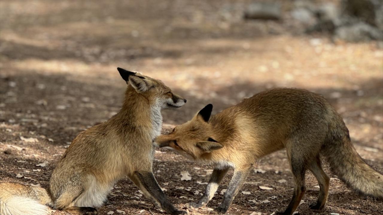 İnsanların yakınına gelmekten çekinmeyen tilkiler, masaların bulunduğu alanındakilerin etrafında yiyecek bekliyor. Çocukların ilgi gösterdiği tilkilerin koşturması ve birbirini kovalaması renkli görüntüler de oluşturuyor.