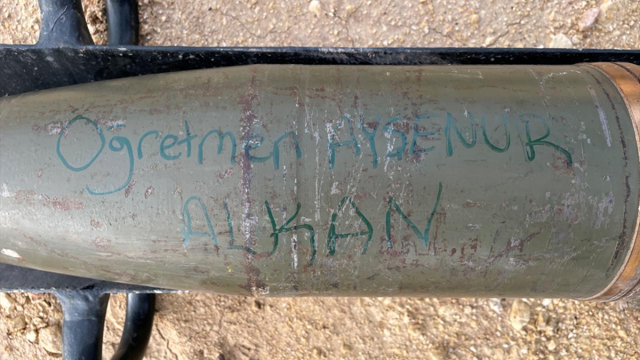 Karkamış ilçesine yönelik yapılan saldırılarda hayatlarını kaybeden öğretmen Ayşenur Alkan ile 4 yaşındaki Hasan Karataş`ın isimleri mermilere yazılarak ateşlendi.