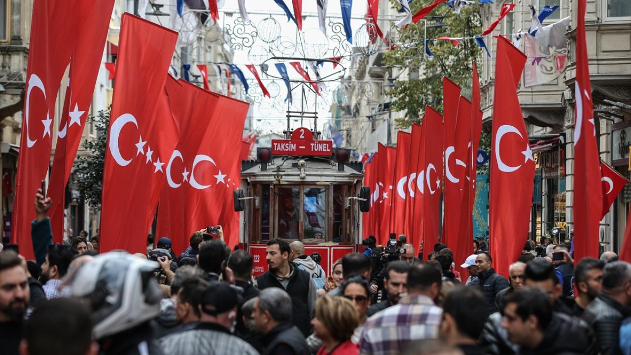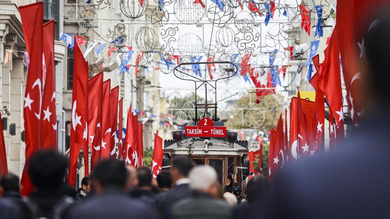 Dün bombalı saldırıda 6 kişinin hayatını kaybettiği İstiklal Caddesi bugün Türk bayraklarıyla donatıldı. Terörün gölgesinde kalmayan İstiklal Caddesi yine kalabalıktı.