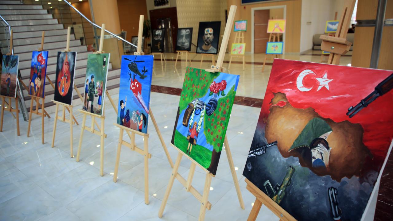 Mersin'de öğrenci ve öğretmenler, terörle mücadelede farkındalık oluşturmak amacıyla "Teröre Karşı Renklerle Birleşmek Projesi" kapsamında resim sergisi açtı.