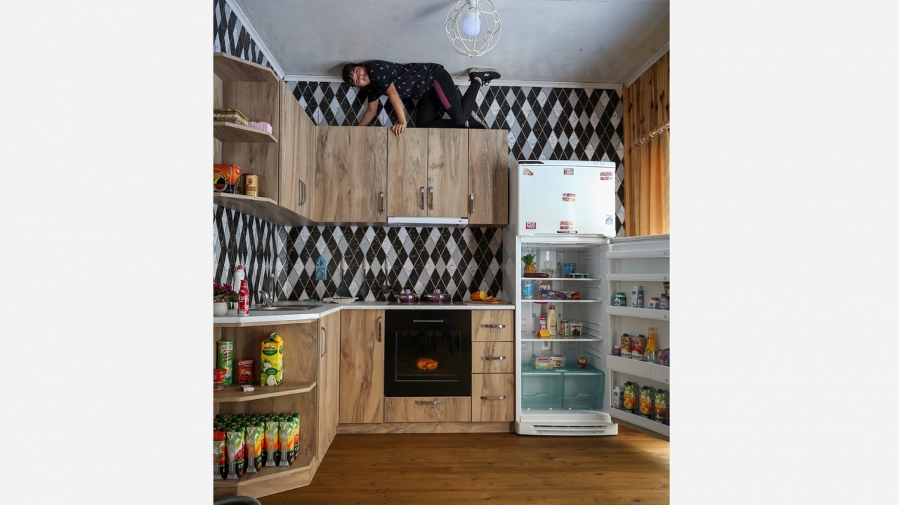 Ters Ev`in ziyaretçileri içeride bol bol fotoğraf çektiriyor.