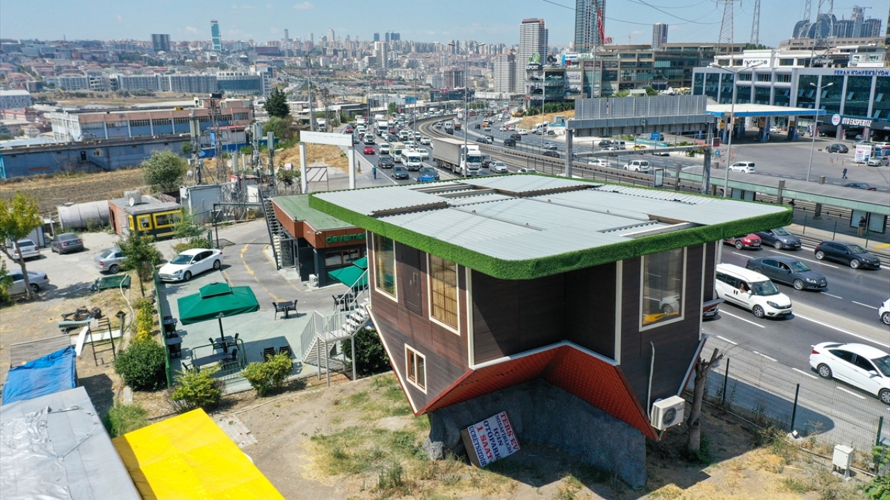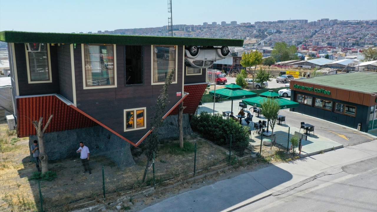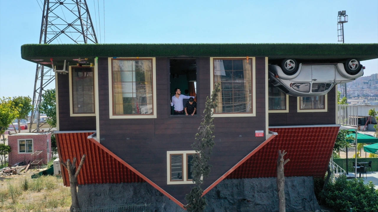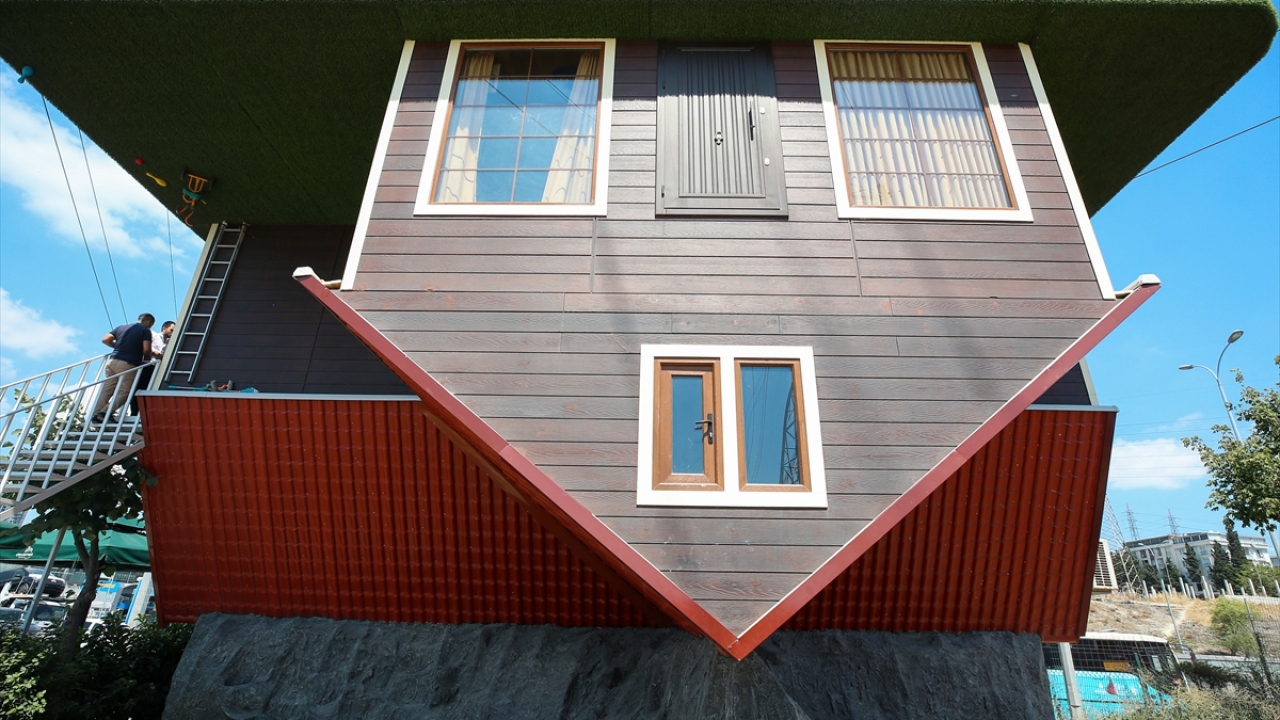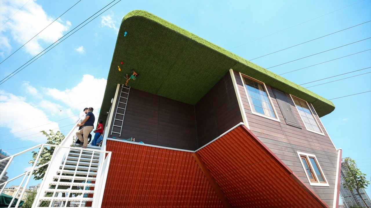 Avcılar'da bulunan Ters Ev, ziyaretçilerden yoğun ilgi görüyor.