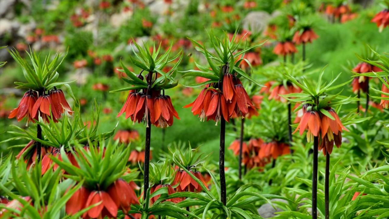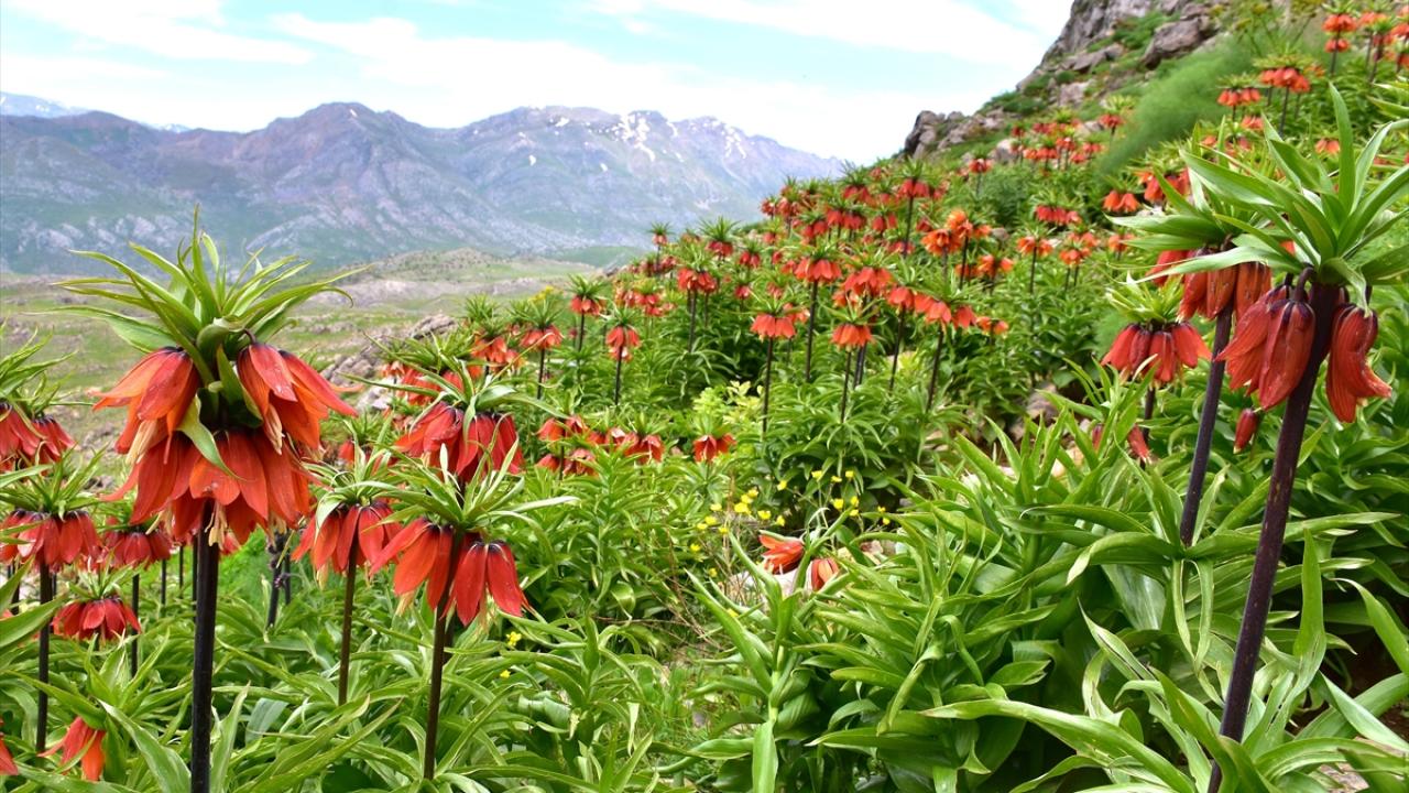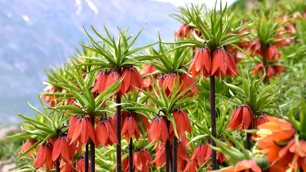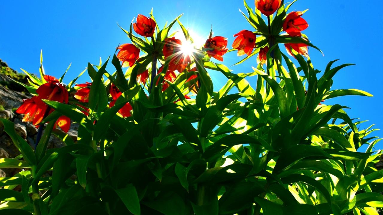 Ters lalelerin 20 gün boyunca yaşayabildiği aktarılan açıklamada, çiçeğin ilkbaharda dağları renklendirdiği aktarıldı.