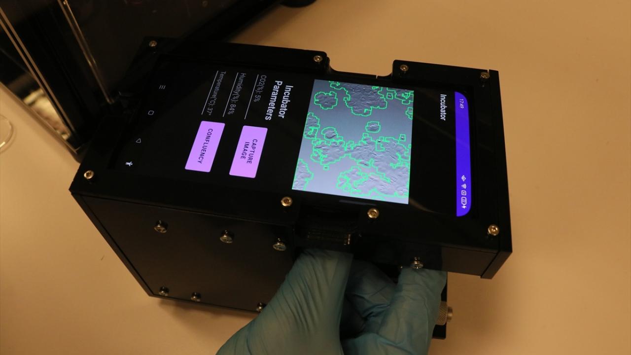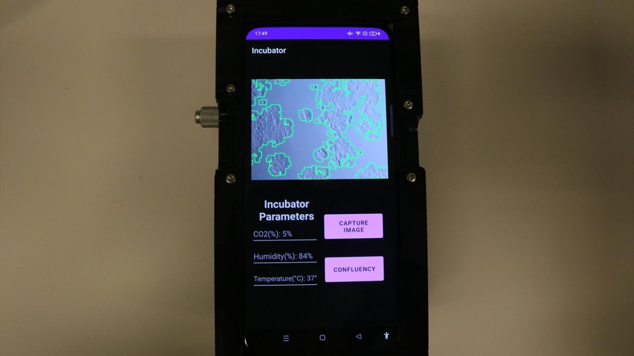 Sağlık teknolojilerinde görüntüleme konusunda çalışmalar yaptığını aktaran Çetin, "Daha önce geliştirdiğimiz düşük maliyetli bir görüntüleme teknolojisi var. Bu düşük maliyetli teknolojinin etrafına yine tamamen laboratuvarımızda geliştirdiğimiz bir inkübatör teknolojisini entegre ettik. Tek bir kutunun içinde hücrelerin görüntülemelerini yaparken aynı zamanda hücreler için gerekli olan karbondioksit, nem, sıcaklık gibi parametreleri de çok düşük maliyetli bir teknolojiyle uzun sürelerde ve sabit değerlerde sağlayabiliyoruz." ifadelerini kullandı.