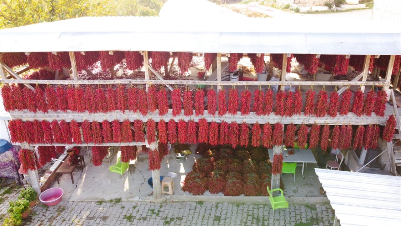 Tescilli 'Çukurören biberi'nde kurutma mesaisi köyü adeta kırmızıya boyuyor