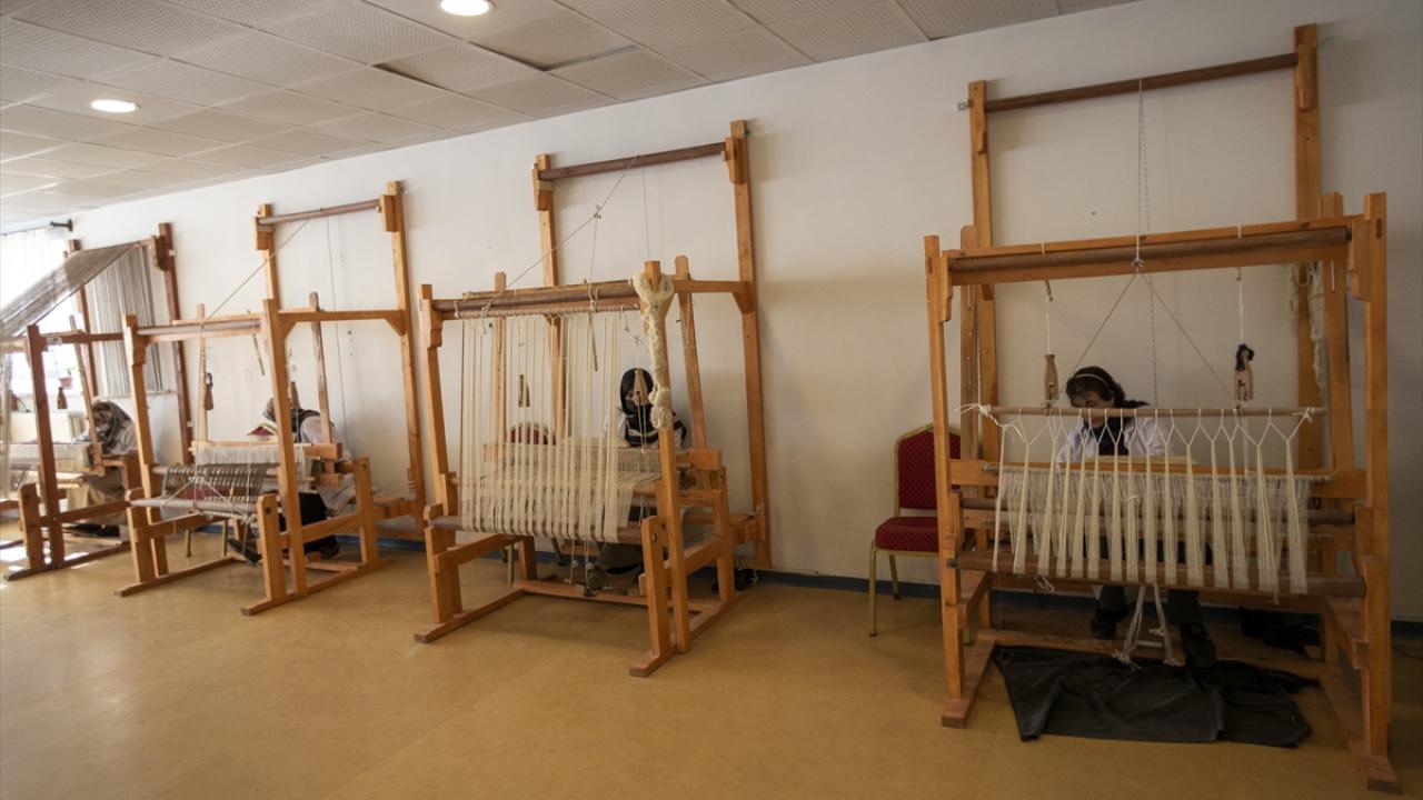 Erzurum'un tescilli "ehram dokuma kumaşı", Olgunlaşma Enstitüsünde erkekler ve kadınlar için hazırlanan çeşitli ürünlerle gelecek kuşaklara aktarılıyor.