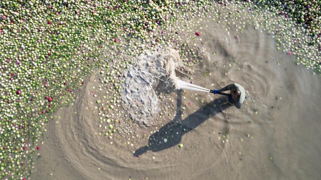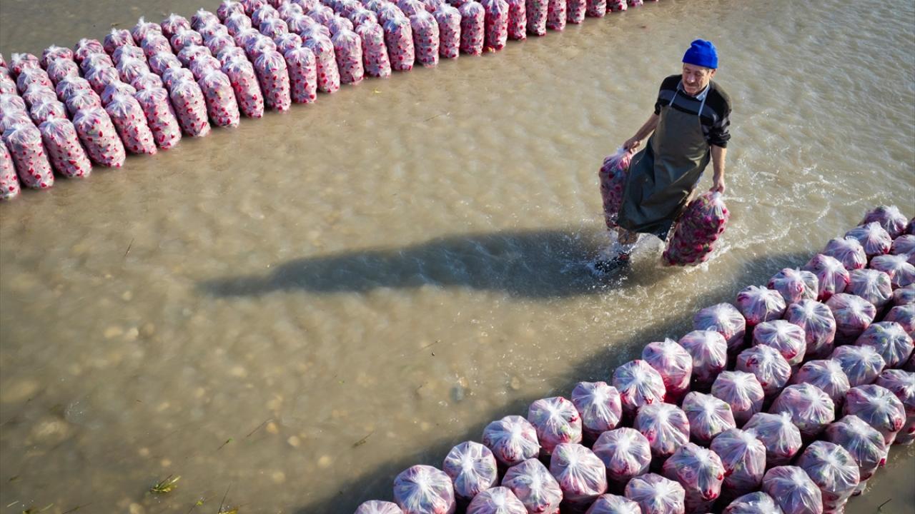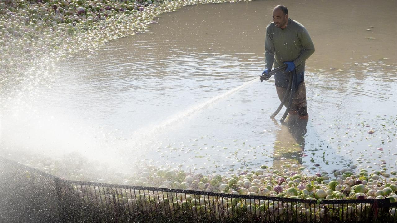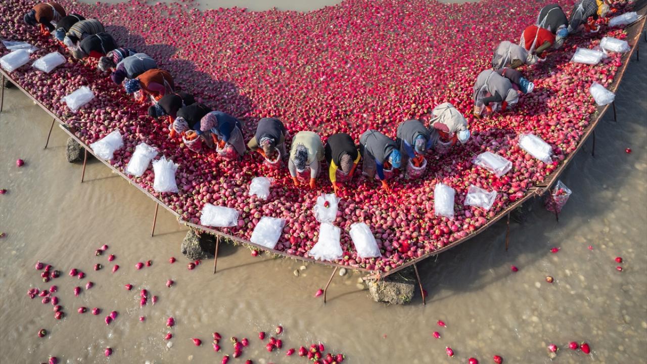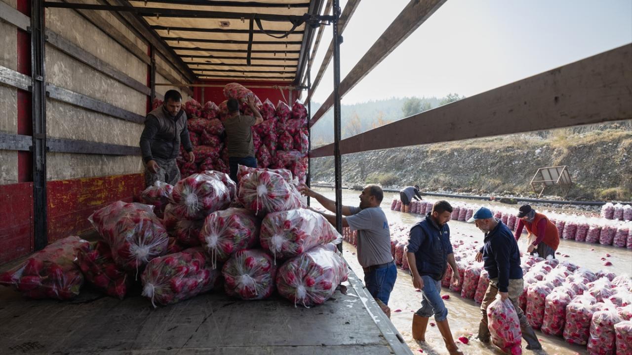 Kış aylarına girilmesiyle başlayan hasat döneminde işçiler, sabahın erken saatlerinde Savrun Çayı`na gelerek turpları yıkayıp paketliyor.