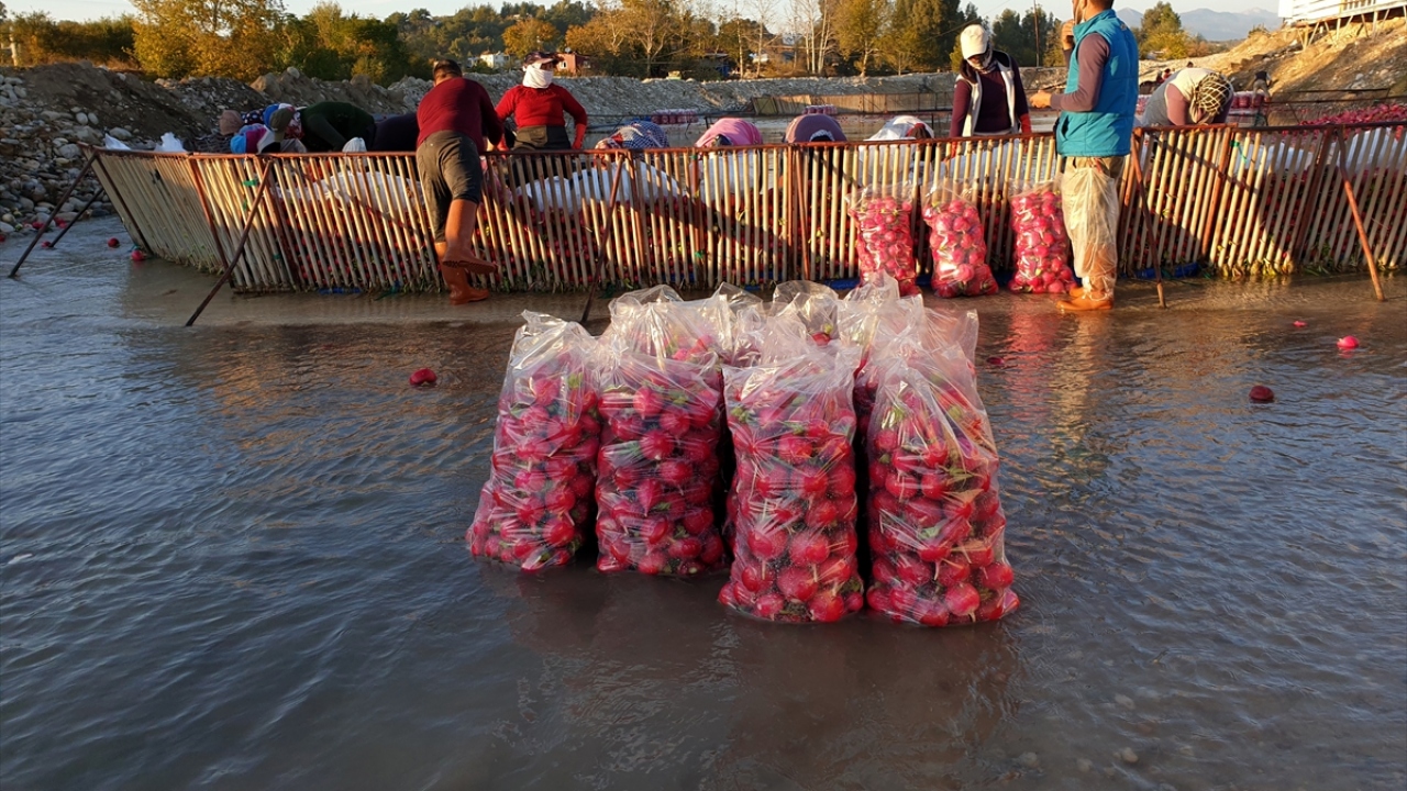 Turplar çay üzerinde oluşturulan havuzlarda yıkanıyor. Ambalajlanan turplar satışa sunulmak üzere çeşitli illere sevk ediliyor.