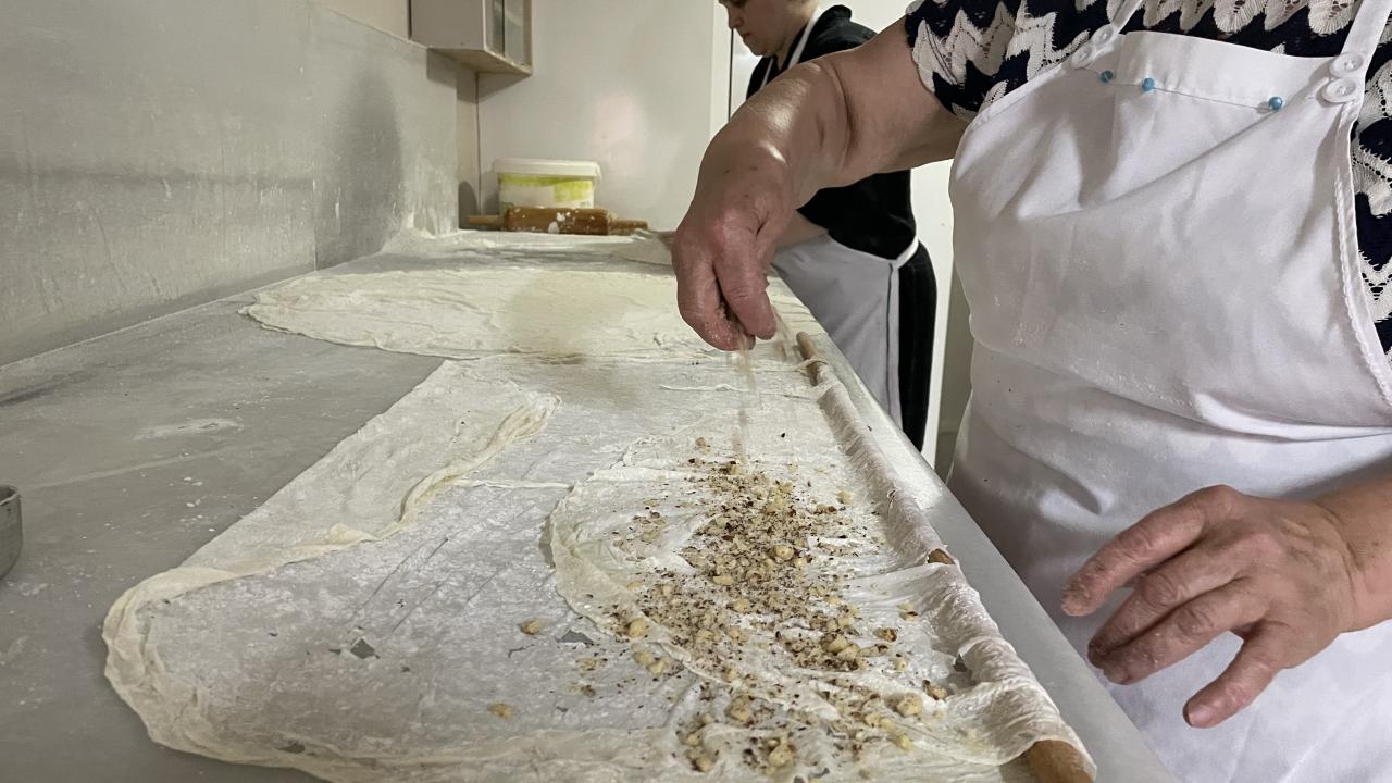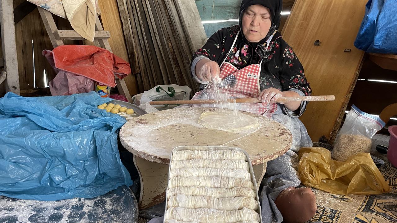 Kurban Bayramı`na sayılı günler kala yöredeki kadınlar, ahşap serender içerisinde imece usulüyle tatlı hazırlama telaşı yaşıyor.