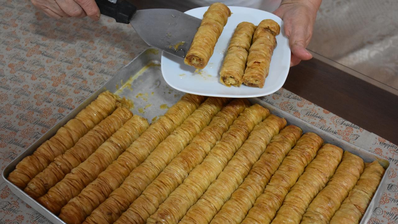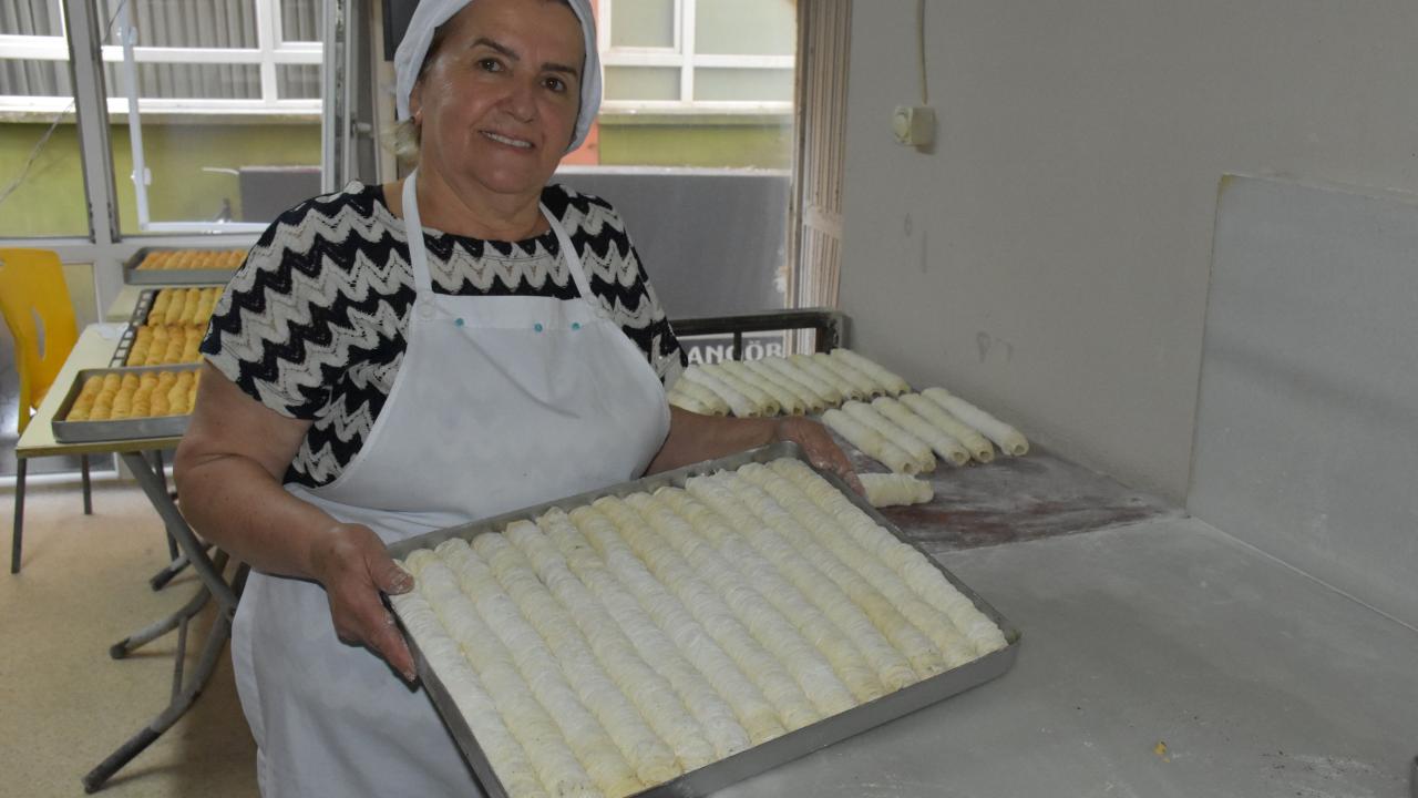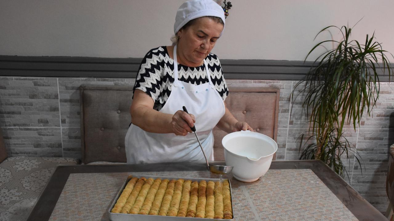 Kadınların işletmeciliğini yaptığı tatlıcılar da bayram dolayısıyla gece saatlerine kadar mesai harcıyor.