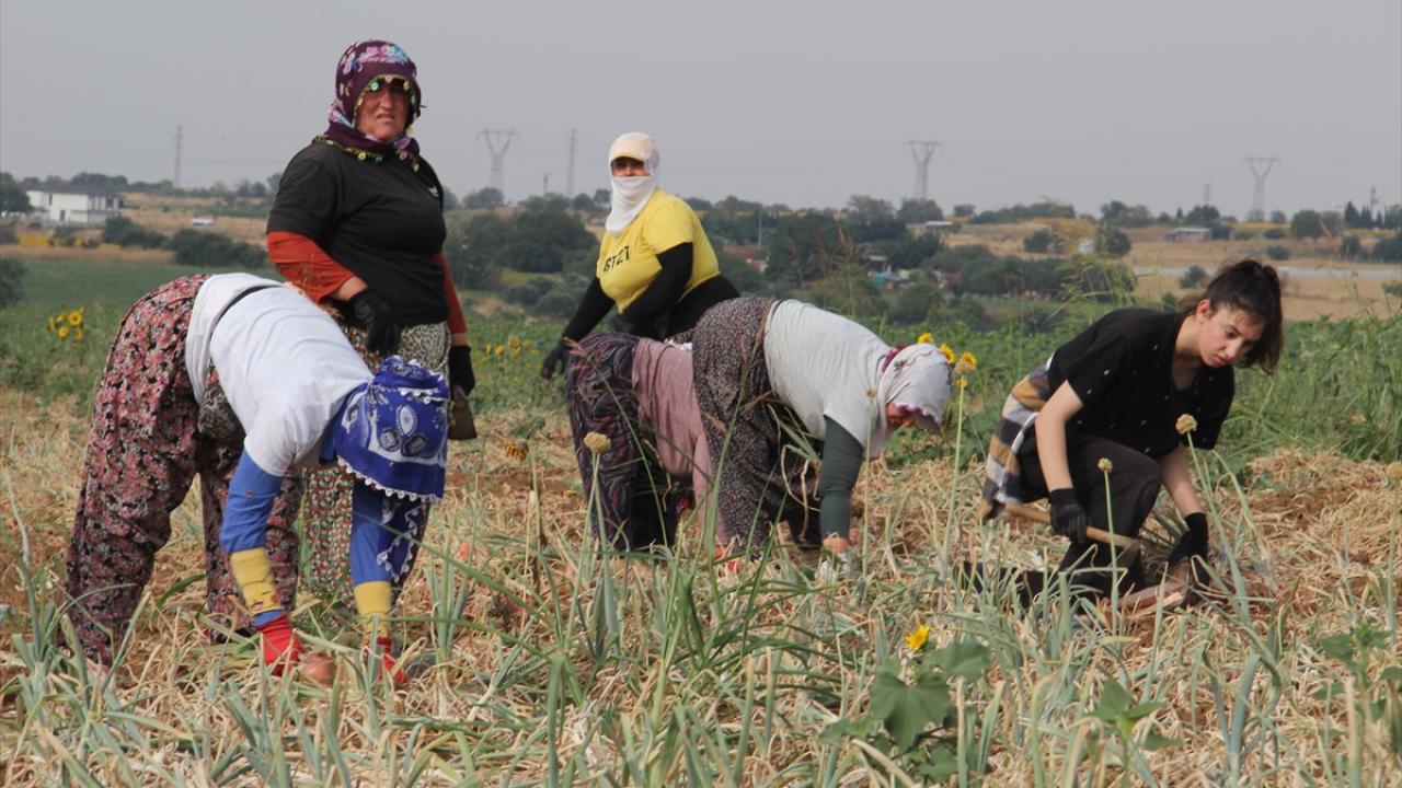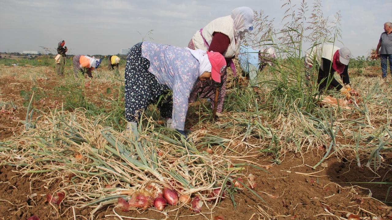 İl genelinde sabahın ilk ışıklarıyla başlayan soğan mesaisi, tarlalarda öğleye dek sürüyor.