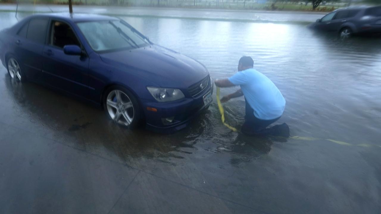 Öte yandan sosyal medyada paylaşılan görüntülerde, yolların sular altında kaldığı ve araçların ilerlemekte güçlük çektiği görüldü.