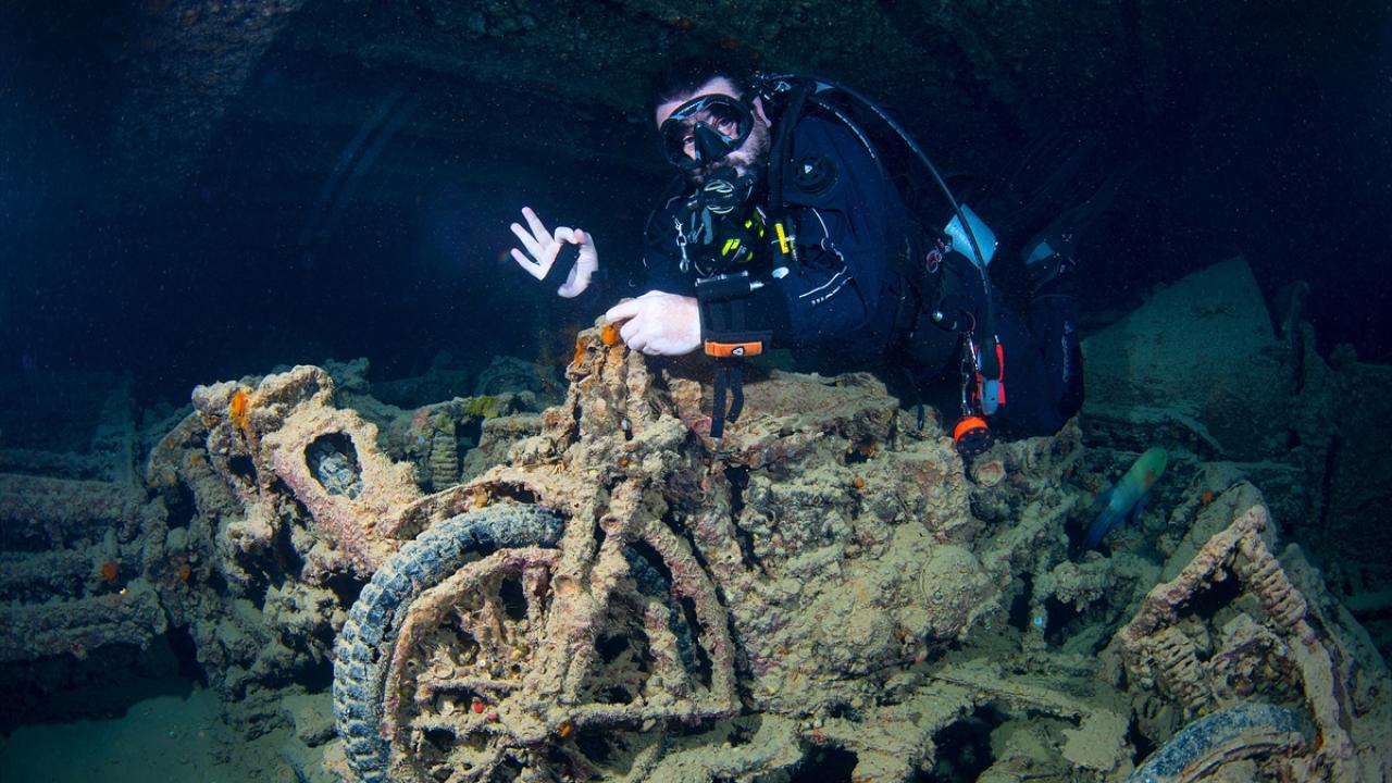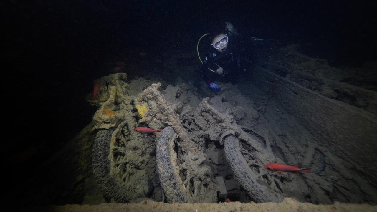 İkinci Dünya Savaşı'nda İngiltere'den Mısır'a askeri mühimmat taşımak üzere açılan ve Alman uçakları tarafından 1941'de batırılan İngiliz yük gemisi "Thistlegorm"un deniz altı kalıntıları, 84 yıllık geçmişe tanıklık etme imkanı sunuyor.