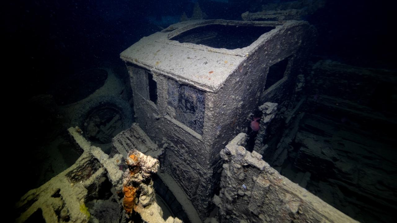 130 metre uzunluğunda ve 18 metre genişliğindeki gemi, 1950`lerin başında Fransız deniz araştırmacısı Jacques-Yves Cousteau tarafından bulundu.