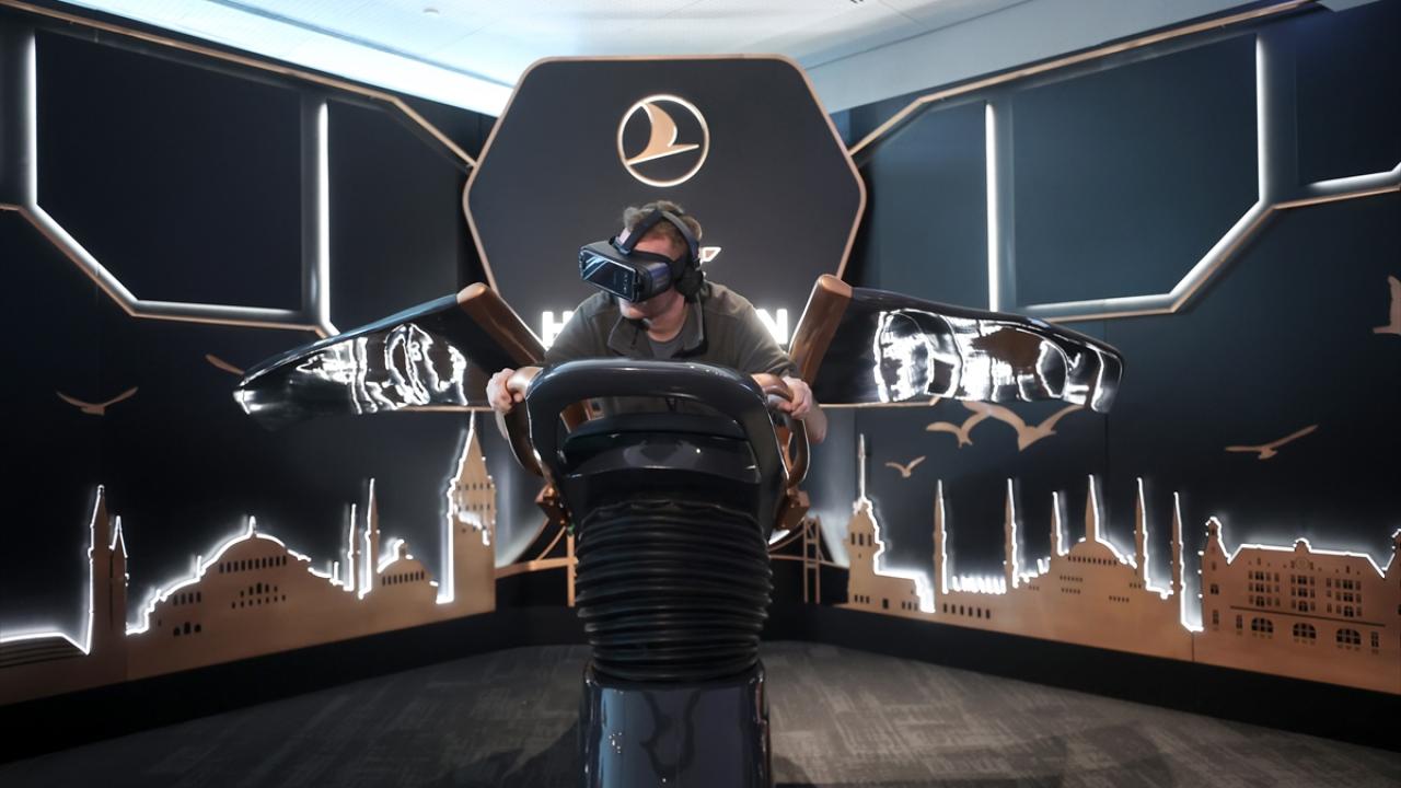 THY`nin misafirleri, turla Sultanahmet Camisi, Ayasofya-i Kebir Cami-i Şerifi, Topkapı Sarayı, Büyükdere Caddesi, 15 Temmuz Şehitler Köprüsü ve Kız Kulesi`ni, 4K çözünürlükte çekilmiş gerçek görüntüler eşliğinde, sanal gerçeklik (VR-Virtual Reality) gözlükleriyle 360 derece açıyla izlerken, rüzgar ve uçuş hareketlerini deneyimleyebilecek.