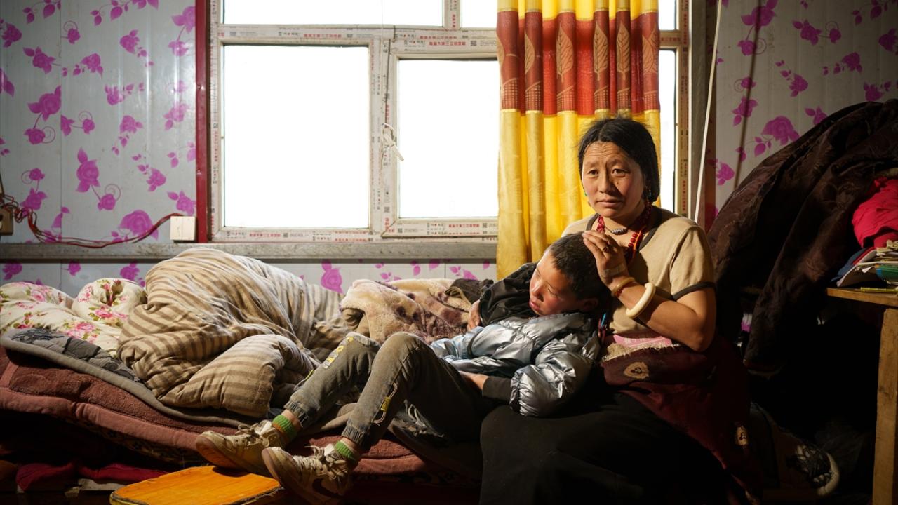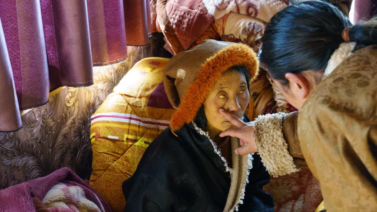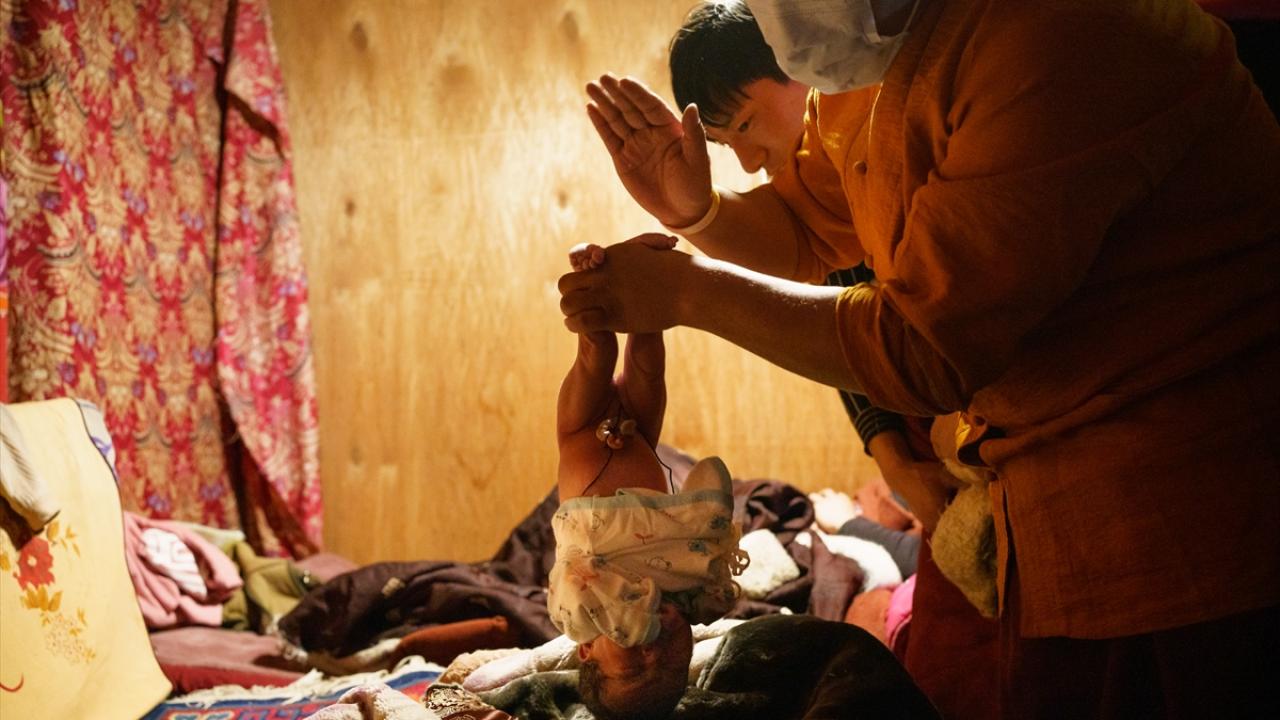 Tibetli genç kız geçirdiği epilepsi krizi sırasında tedavi görmek amacıyla yakını ve doktor tarafından kliniğe taşınıyor.