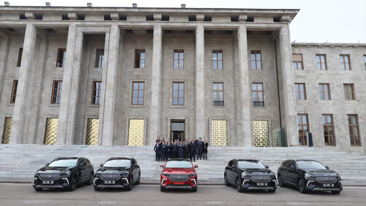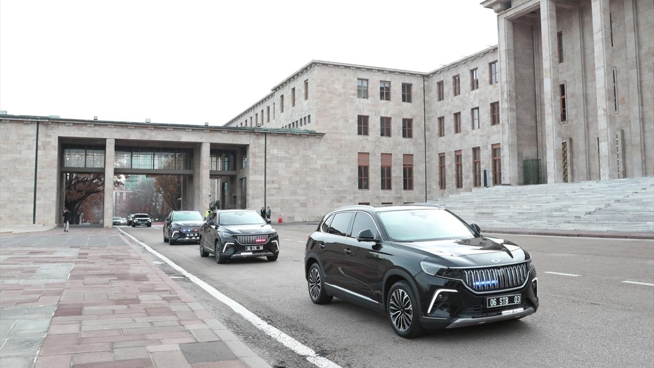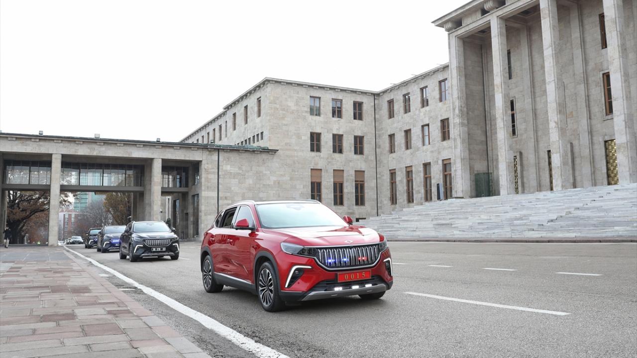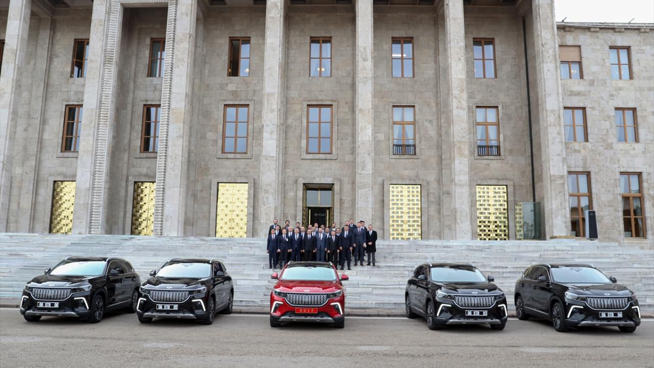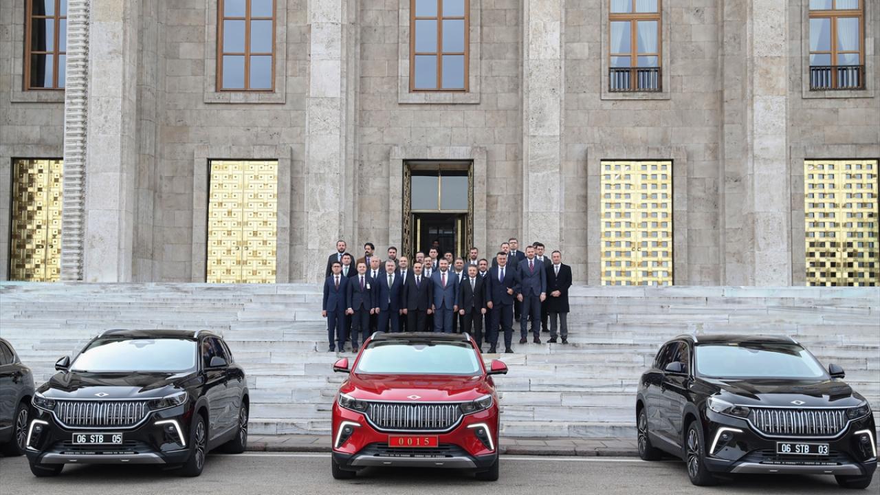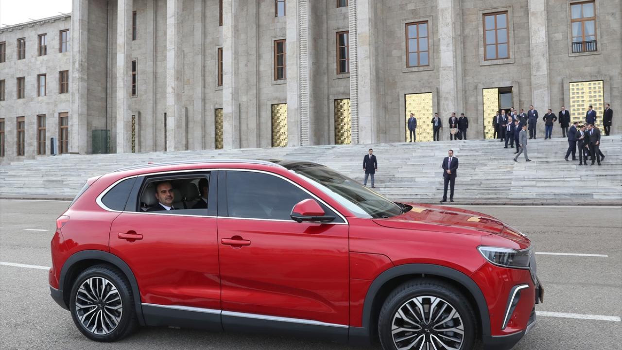 Sanayi ve Teknoloji Bakanı Mehmet Fatih Kacır ile 4 bakan yardımcısı da TBMM`ye yerli otomobil TOGG`lar ile geldi.