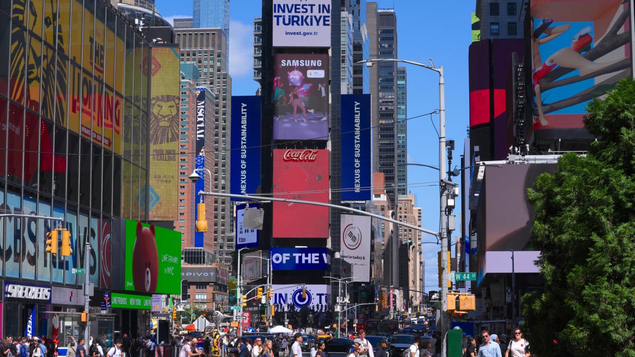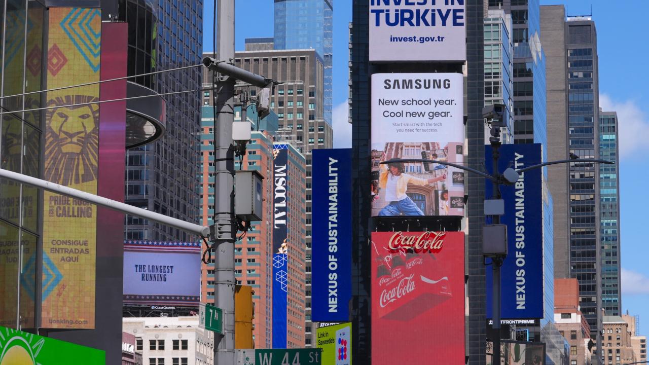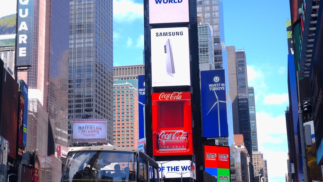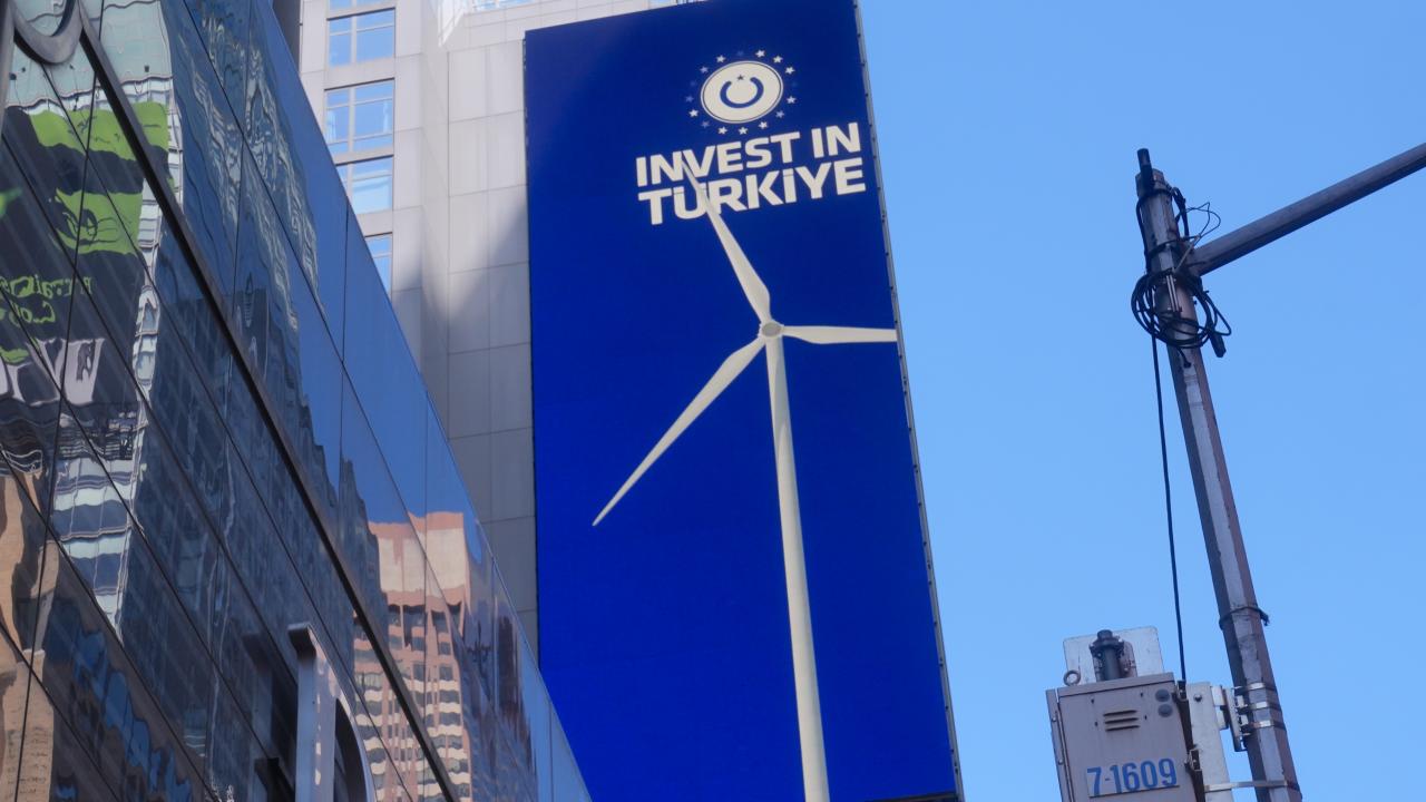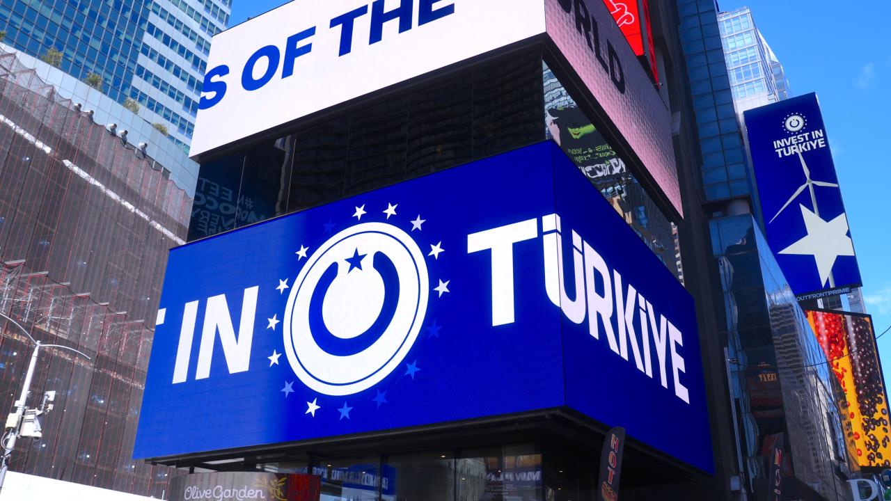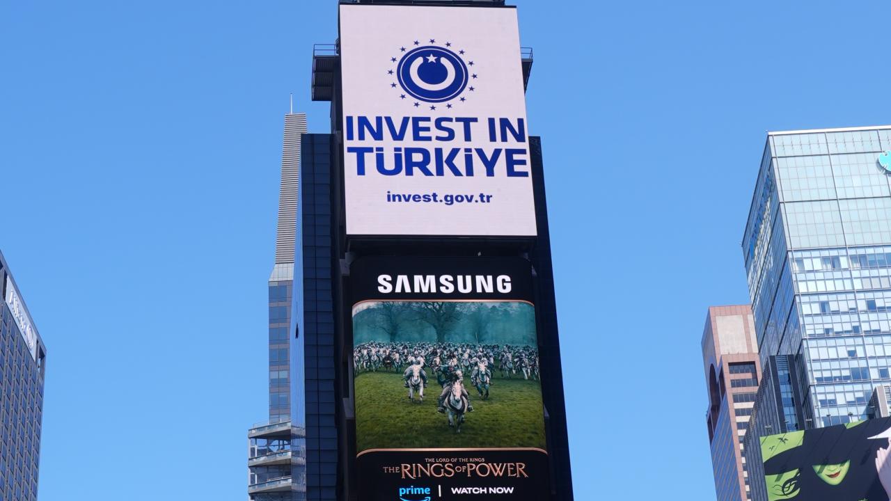 Cumhurbaşkanlığı Yatırım Ofisi, New York'taki Times Meydanı'ndaki dijital panolarda, `Invest in Türkiye` ve dünyanın bağlantı noktası anlamına gelen `Nexus of the World` mesajlarını yayımladı.